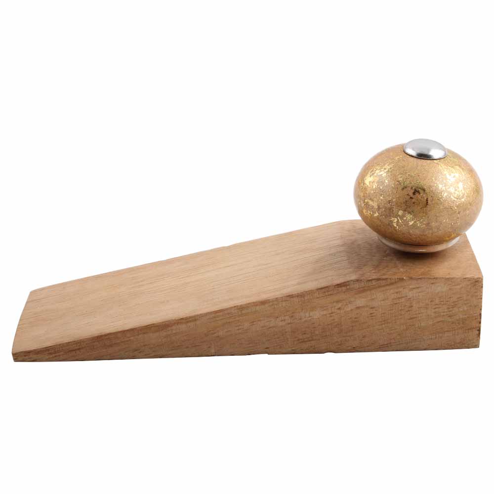 Handmade Ceramic and Wooden Door Stopper.Wooden Door Stopper with a Ceramic Knob to Carry it Easily. This Wooden Door Stopper has Glue Dots under it to Ensure that it does not Slip. It is Handmade by the Craftsmen of India and this Innovative Door Stopper won't Disappoint You.