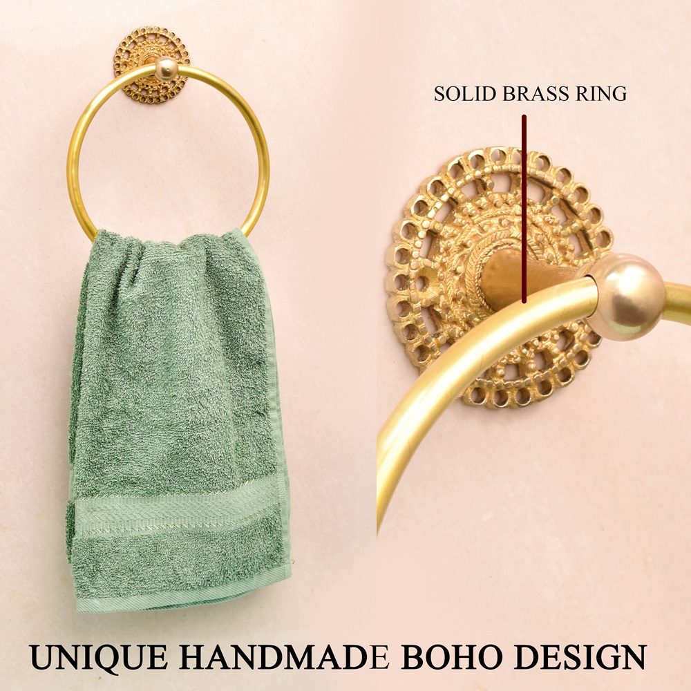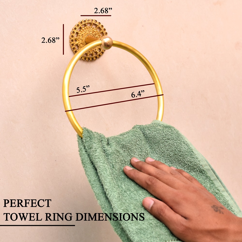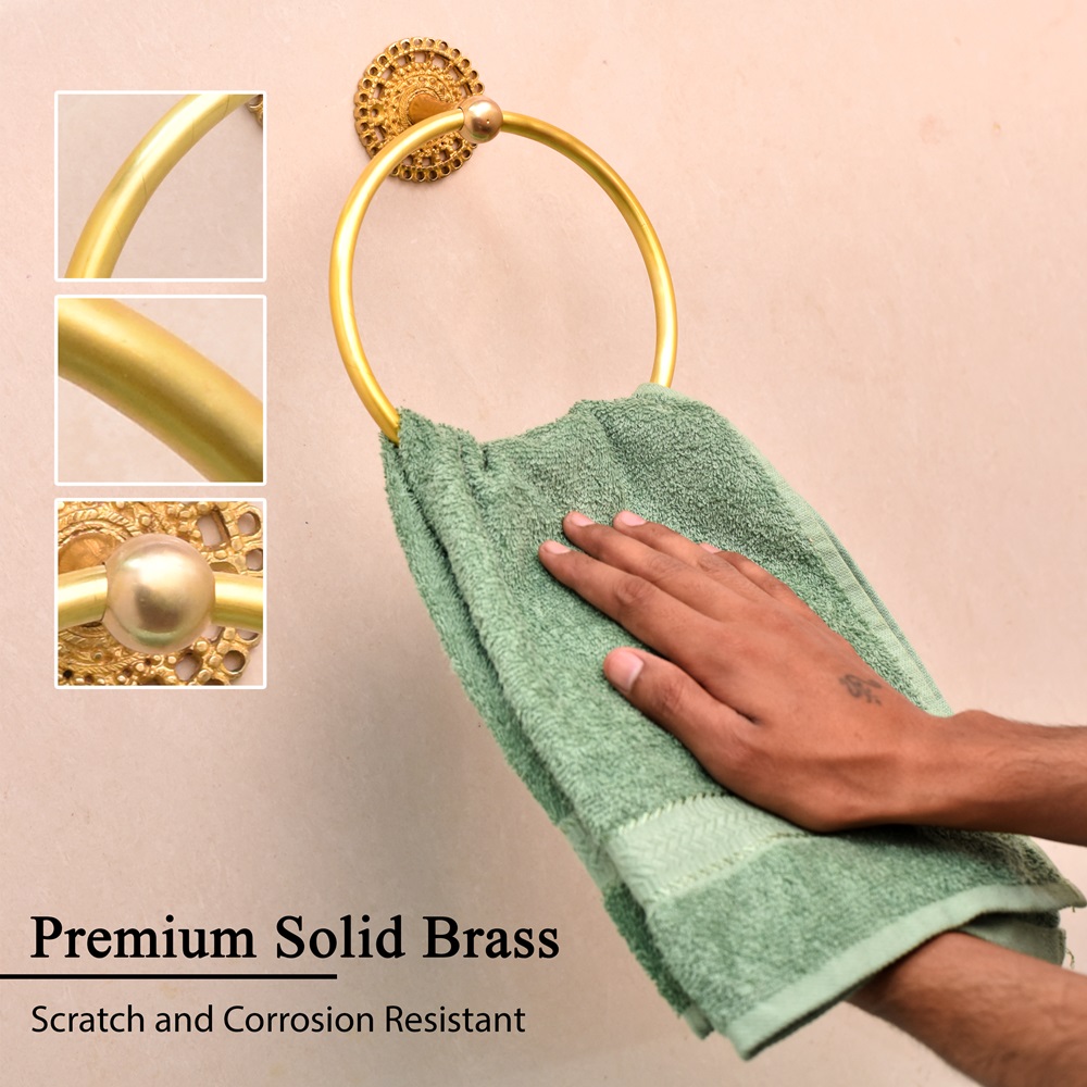 Introduce timeless elegance to your bathroom or powder room with the Golden Floral Brass Towel Ring Holder. Handcrafted from pure brass and finished in a radiant golden hue, this towel ring features intricate floral detailing that elevates your space beyond the ordinary. The design combines practical functionality with decorative charm, bringing both beauty and utility to your walls. Whether you're refreshing your decor or completing a vintage-inspired setting, this towel holder adds the perfect finishing touch.