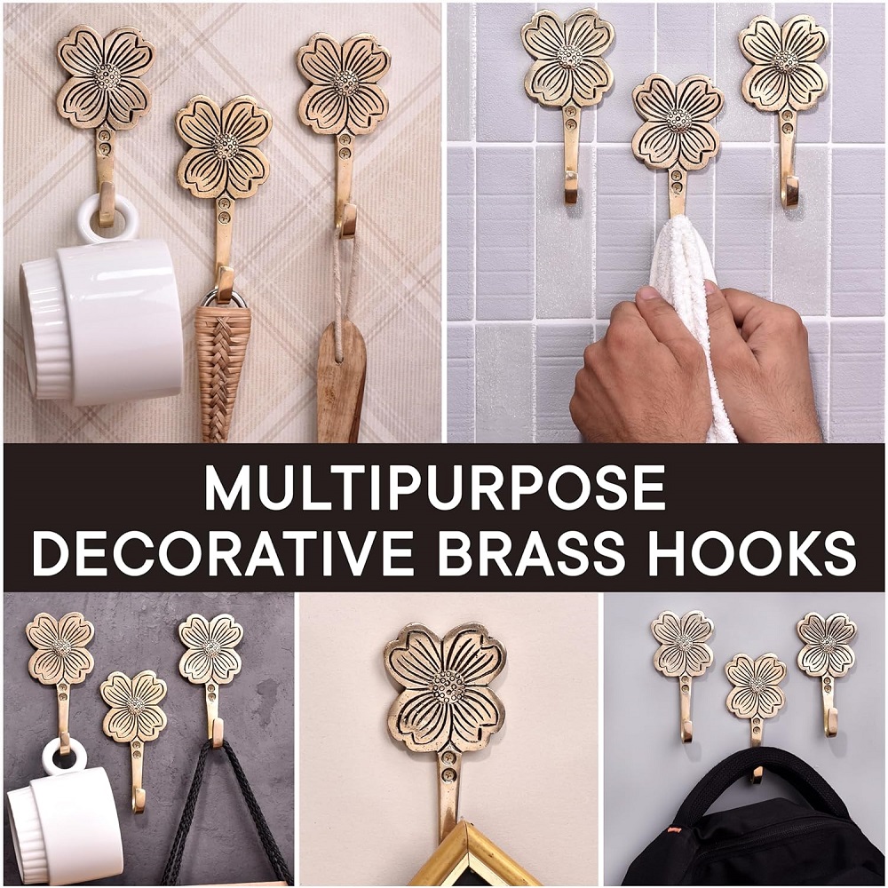 Whether you're decorating a traditional, contemporary, or eclectic home, the Golden Flower Brass Wall Hooks complement a wide variety of styles. Their detailed design and luxurious golden finish add elegance to any space, from cozy living rooms to spacious foyers.