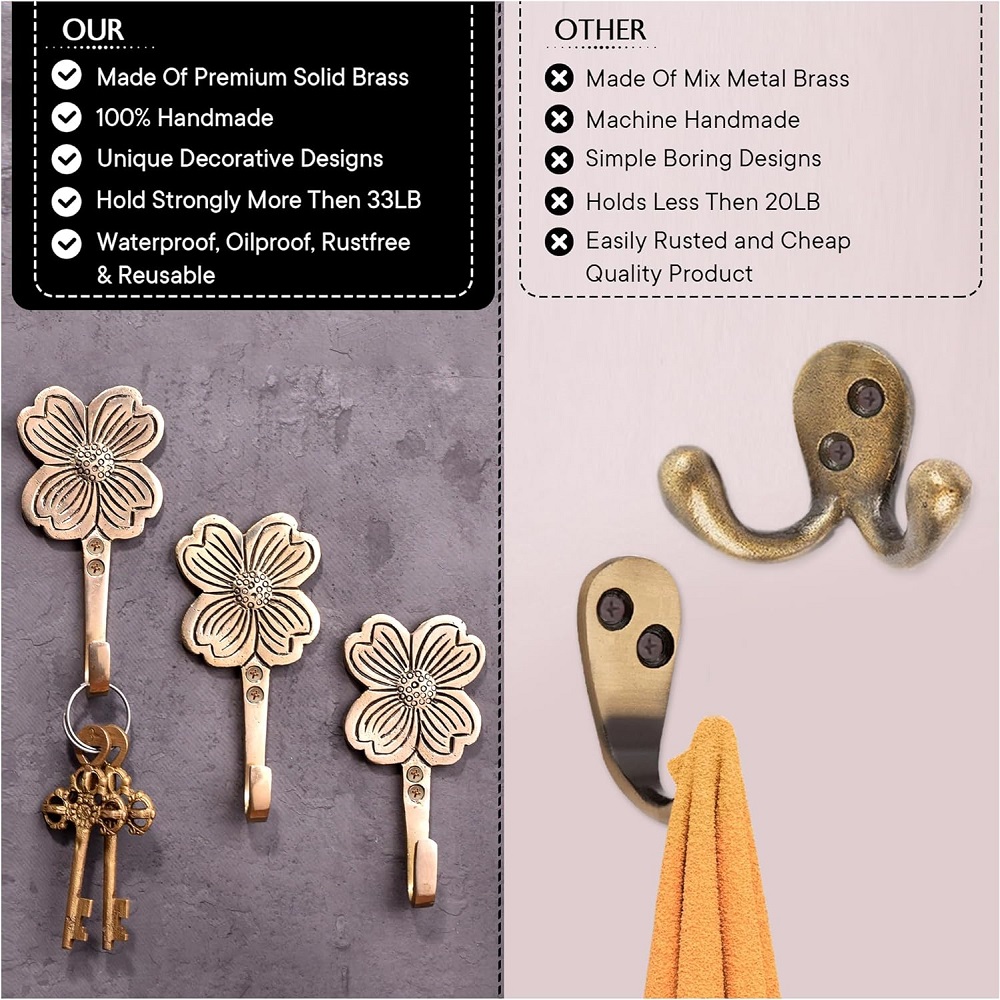 Crafted from high-quality brass, these hooks are built to withstand daily use and hold up to your everyday essentials. Whether you use them in your hallway, bathroom, or bedroom, you can trust these hooks to offer long-lasting strength and reliability.