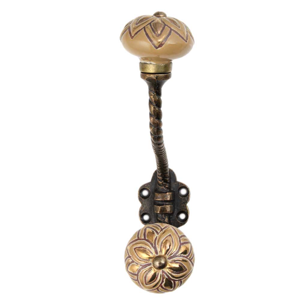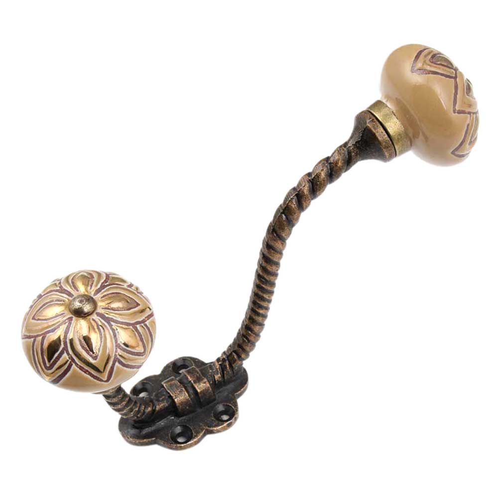 Golden Flower Ceramic Antique Rope Iron Hook. When Put on Wall or Cabinet It Gives A Sturdy Look. This Hook is Strong Enough to Hold Your Cloths, Keys, Tea Cups, Coffee Mugs, Hand Towels etc.