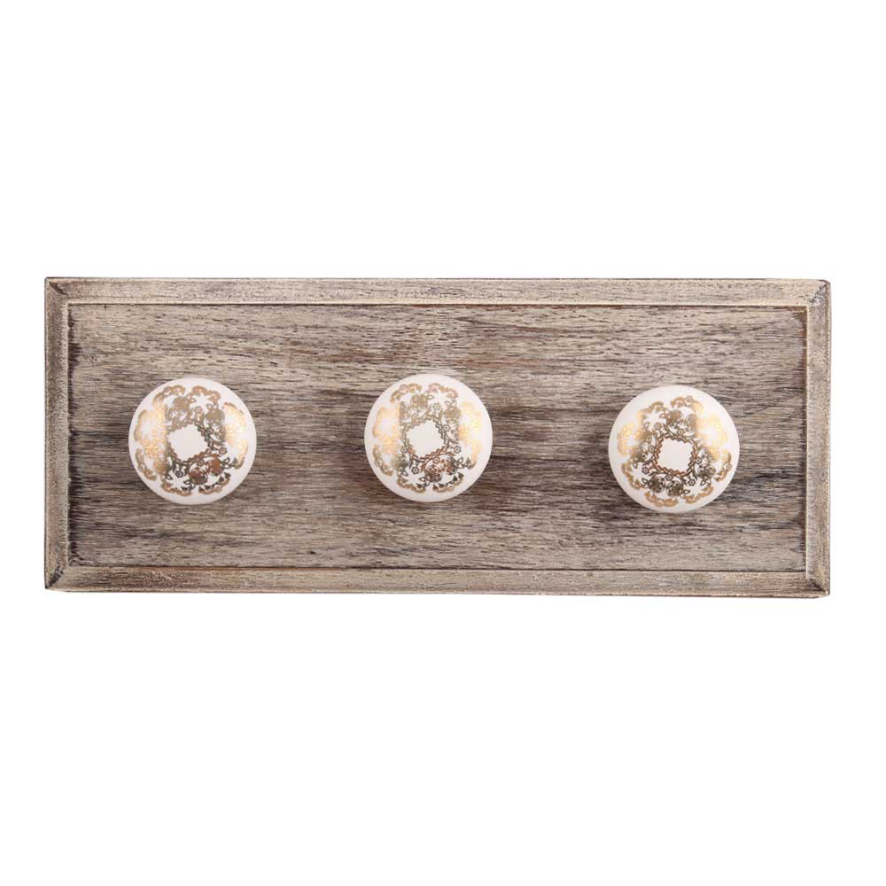 Golden Flower Flat Ceramic Wooden Hook. A Perfect Complement to the Soft Tone of the Wood are these White Traditional Hat Coat Hook Made of Genuine Porcelain and Brass. It can be use to Hang Jewellery, Leashes, Towels, Scarves, Light Weight Sweaters, Caps Etc.