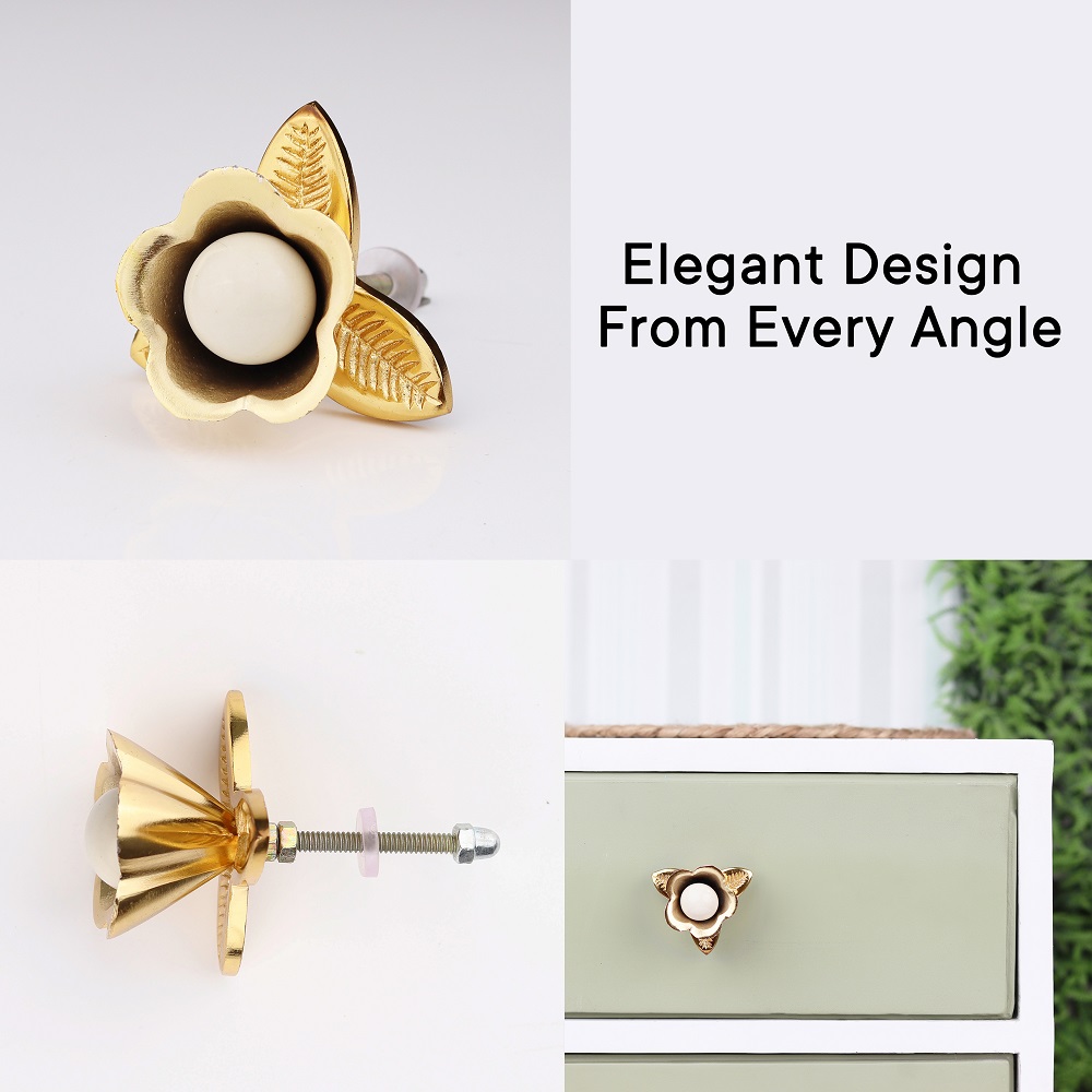 These cabinet knobs are not just functional but serve as statement pieces for any room in your home. Whether it's for a new furniture piece or a refurbishment project, the Golden Iron White Ceramic Bloom Cabinet Knobs will add an air of elegance and style to your interiors.