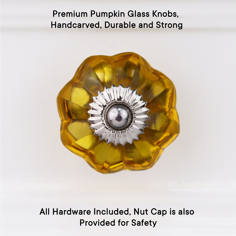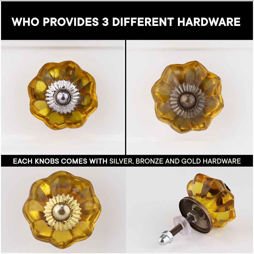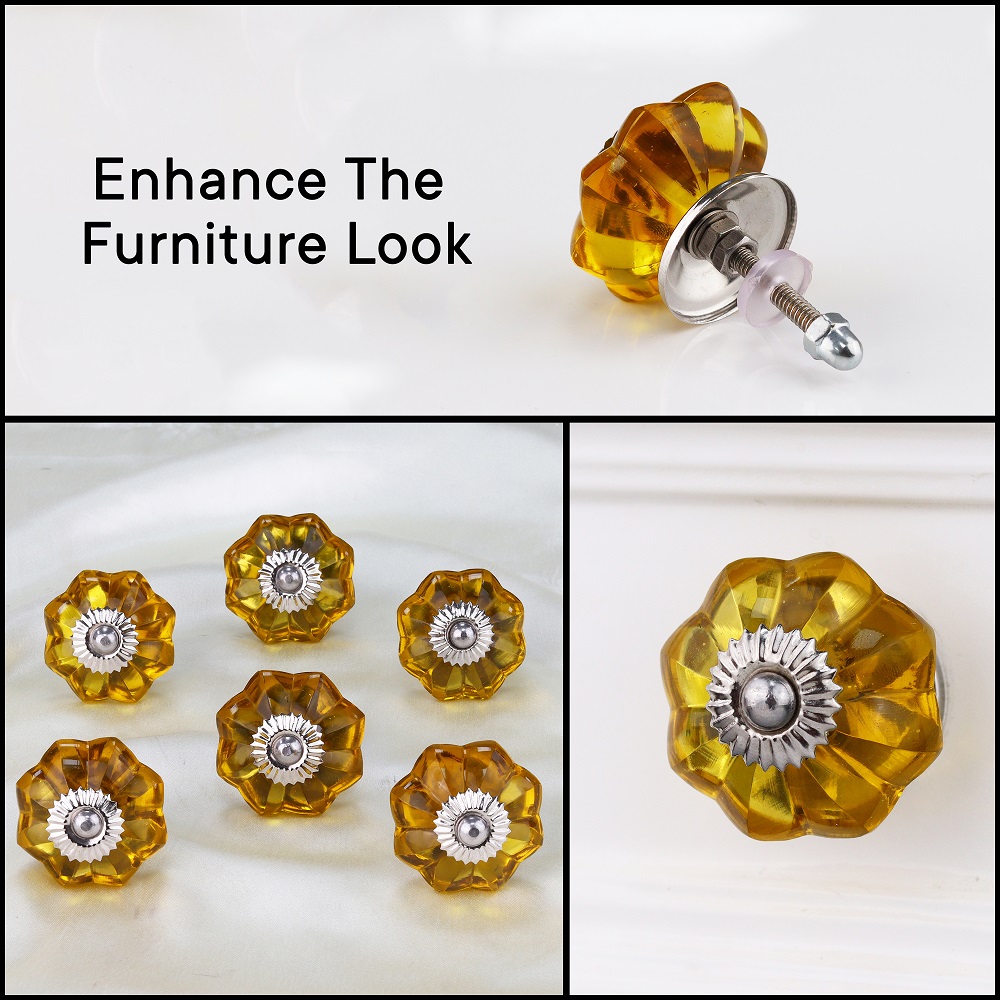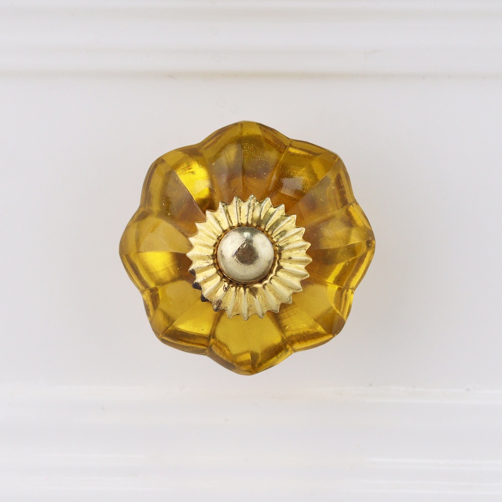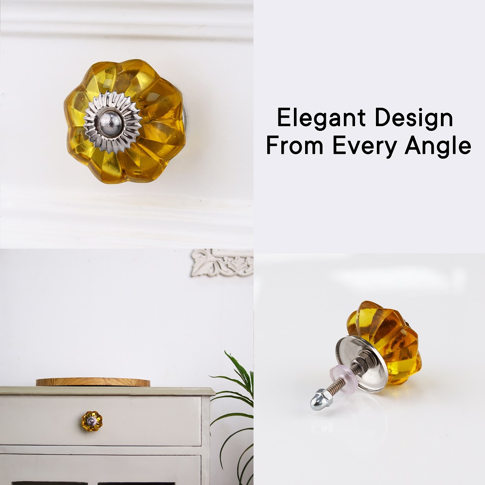 Golden Glass Knobs, Big. Ideal for Drawer, Dresser, Cabinet, Wardrobe, Cupboard and almirah