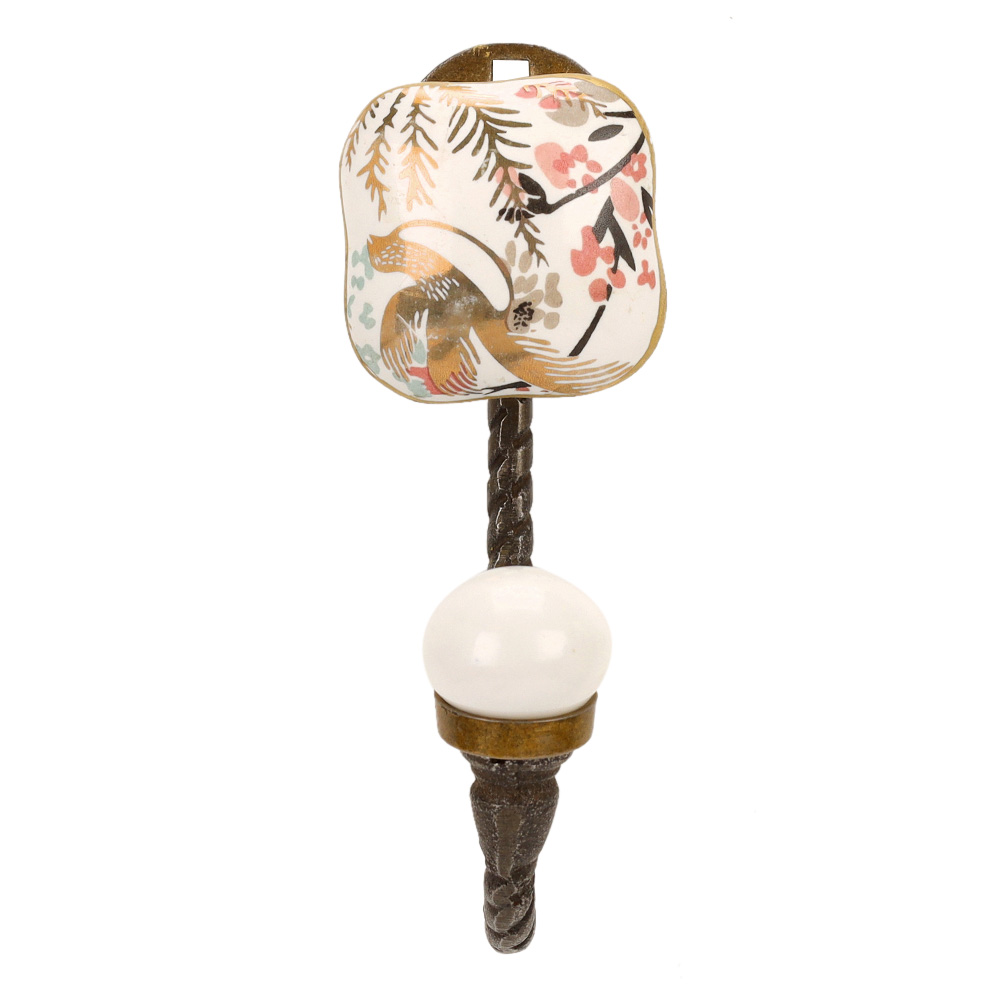 Made with strong, glazed ceramic and antique-finished metal, the hook stands up to regular use in both dry and humid spaces.
