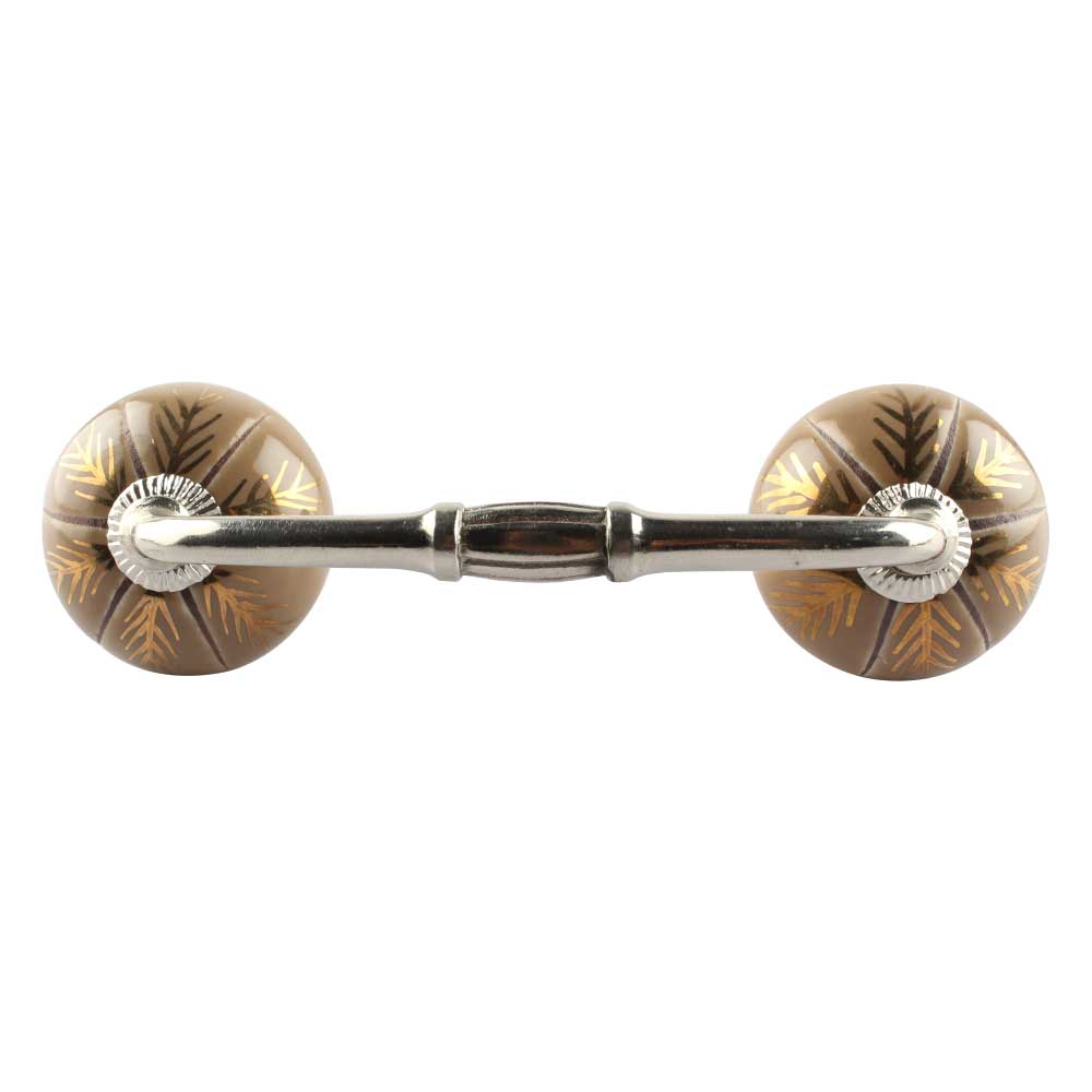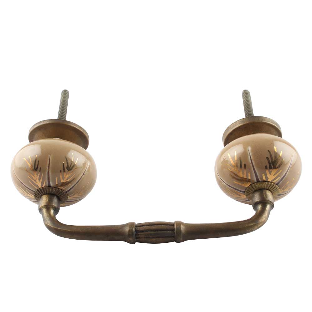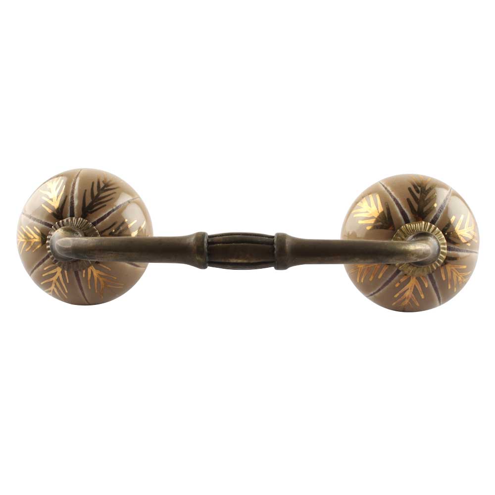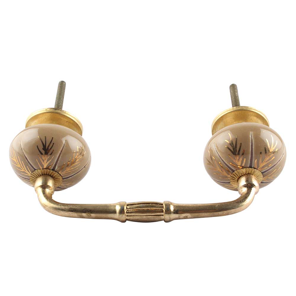 Golden Leaf Ceramic Floral Bridge Handle. Ideal for Drawer, Dresser, Cabinet, Wardrobe, Cupboard and Almirah etc.