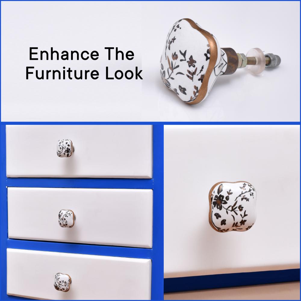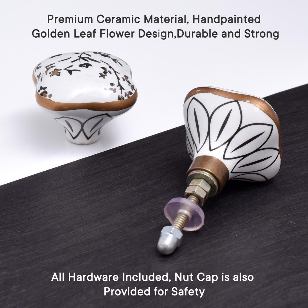 The intricate golden leaf and flower design on the ceramic knob infuses a touch of nature-inspired elegance into your furniture. Its detailed craftsmanship creates a striking contrast against the neutral ceramic base, making it a standout addition to both classic and contemporary settings.