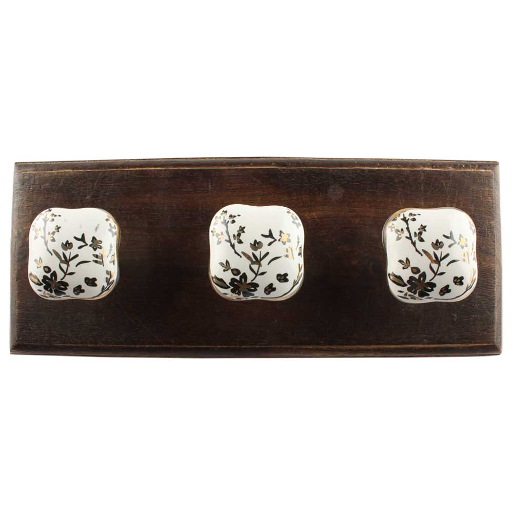 The Golden Leaf Flower Square Ceramic Wooden Hook is a fusion of artisanal charm and practical design. This handcrafted wall hook features a square ceramic tile adorned with a golden floral leaf motif, delicately painted to catch light and attention. Mounted on a solid Natural wood base, it combines luxury with utility, bringing warmth and refinement into any space. Whether used as a standalone accent or part of a wall-mounted set, this hook is a beautiful and functional way to stay organized with style.