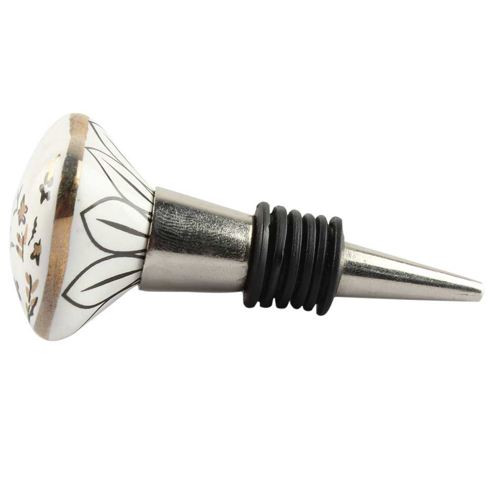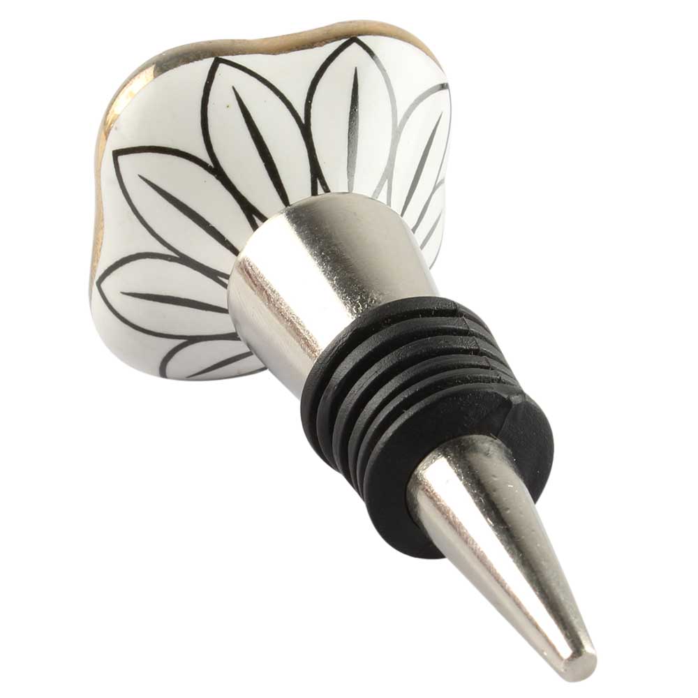 Golden Leaf Square Ceramic Wine Stopper. Zinc Alloy Wine Bottle Stopper with Attractive Jute Bag Packaging.