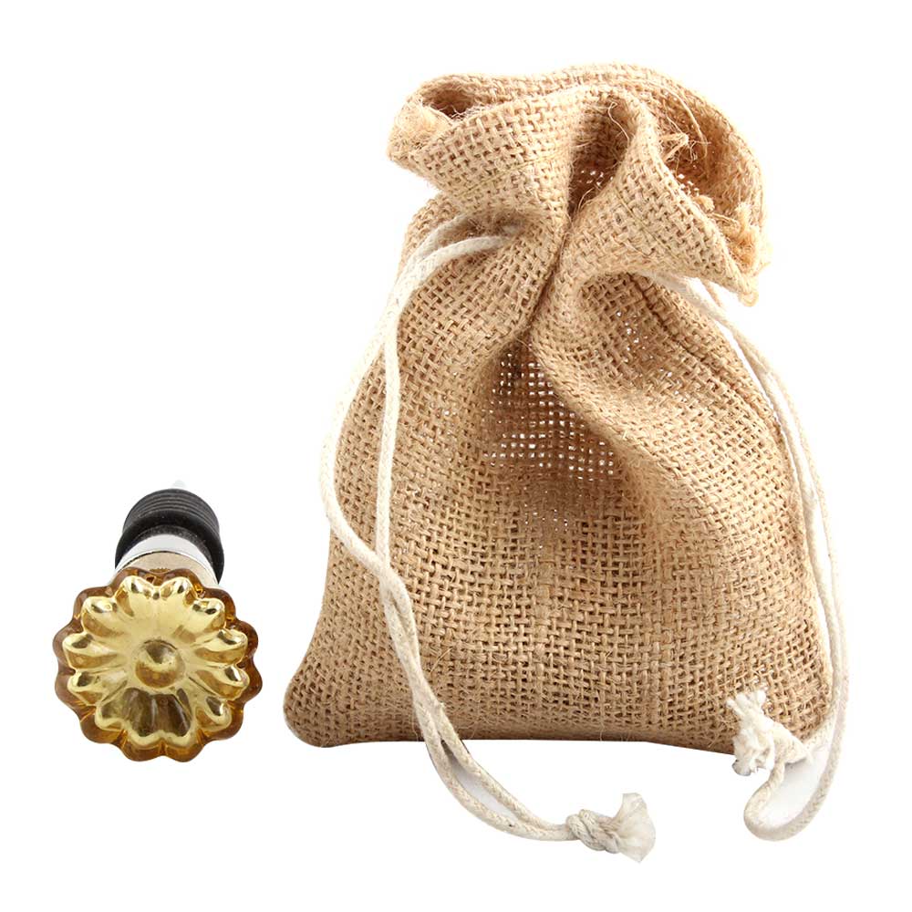 Golden Mercury Sunflower Glass Wine Stopper.zinc alloy wine bottle stopper with attractive Jute Bag Packaging.