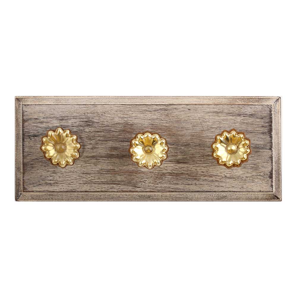 Golden Mercury Sunflower Glass Wooden Hook. A Perfect Complement to the Soft Tone of the Wood are these White Traditional Hat Coat Hook Made of Genuine Porcelain and Brass. It can be use to Hang Jewellery, Leashes, Towels, Scarves, Light Weight Sweaters, Caps Etc.