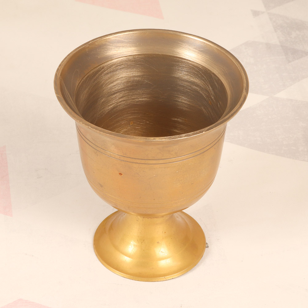 Discover the timeless allure of this exquisite brass flower pot, inspired by the rich artistic heritage of South India. Crafted with meticulous attention to detail, this unique cup-shaped container is a true testament to the skill and artistry of traditional South Indian metalworkers. This brass flower pot is more than just a functional piece - it's a work of art that celebrates the cultural legacy of South Asia. The plain brown finish creates a timeless, elegant aesthetic, allowing the intricate craftsmanship to take center stage. Whether you choose to display your favorite blooms or use it as a captivating decorative accent, this flower pot will transform any space into a serene oasis of beauty. Embrace the beauty of South Asian artistry and bring a touch of timeless elegance into your home. This brass flower pot is the perfect addition for nature enthusiasts, plant lovers, and anyone with an appreciation for handcrafted, one-of-a-kind decor. Invest in a piece that will continue to delight and inspire you for years to come, and let it serve as a daily reminder of the rich cultural traditions that have shaped the art and design of South India.
