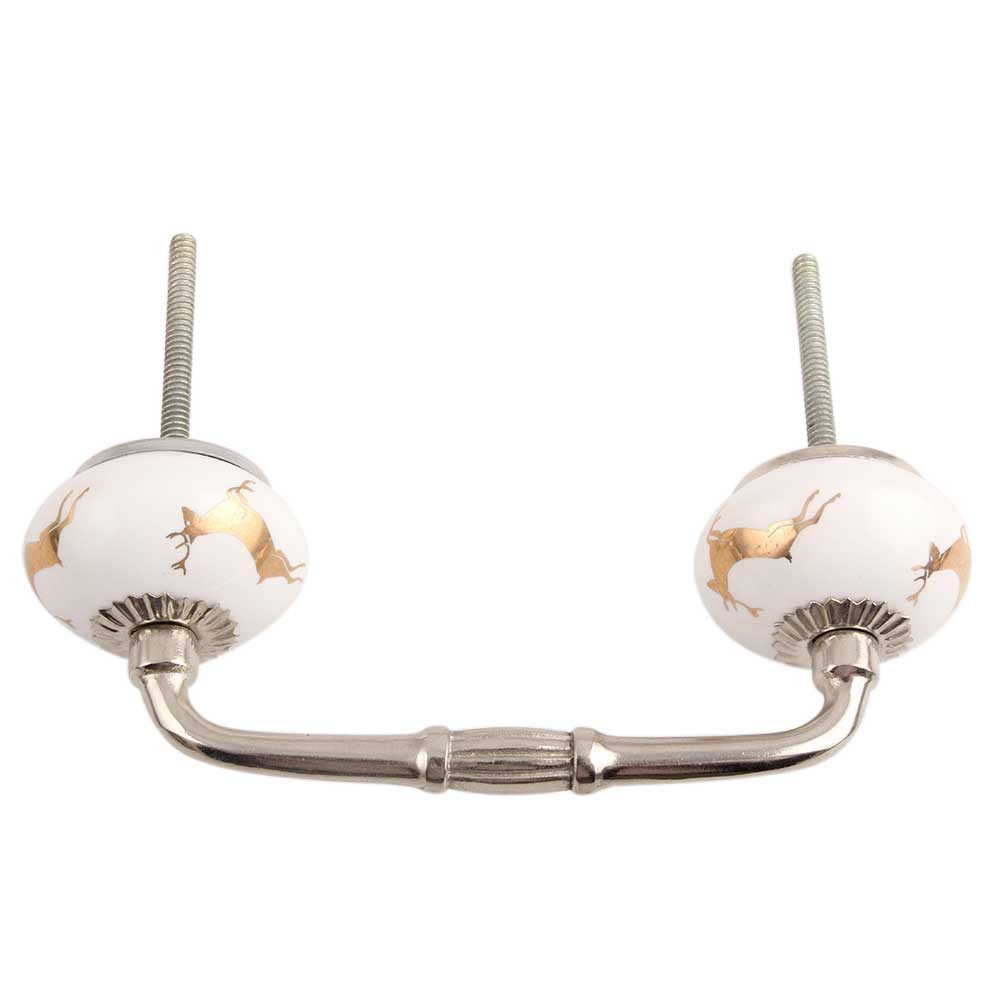 Golden Running Rein Deer Pattern Ceramic Bridge Handle. Ideal for Drawer, Dresser, Cabinet, Wardrobe, Cupboard and Almirah.
