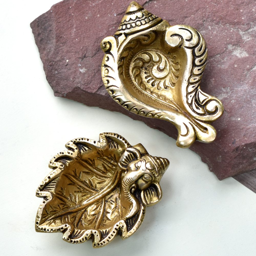 Celebrate the divine spirit of worship with this Golden Shankh & Ganesha Brass Diya, crafted to bring light, blessings, and cultural richness into your sacred rituals. Designed with the auspicious motifs of the conch (Shankh) and Lord Ganesha, this diya embodies purity, prosperity, and spiritual energy. Polished in radiant gold and made of solid brass, it is perfect for ritual puja, Diwali lighting, and as a timeless devotional gift.