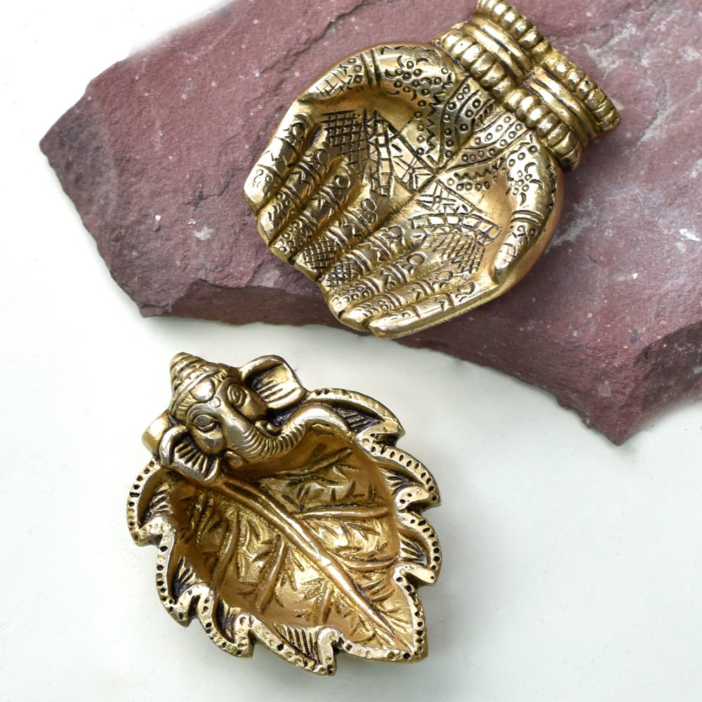 Yes, it is handcrafted from brass with Shankh and Hands motifs.