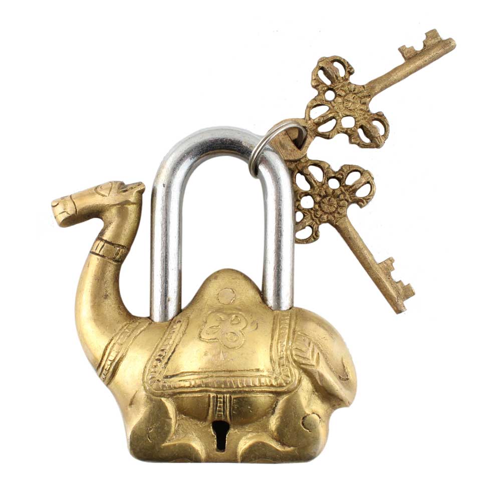 Golden Sitting Camel Decorative Lock With Keys In Pair makes it an exclusive decorative product to add an antique look to your home, office, school ,hotels, gym, clubs, restaurant doors. Wedding gift, birthday gift and souvenir.
