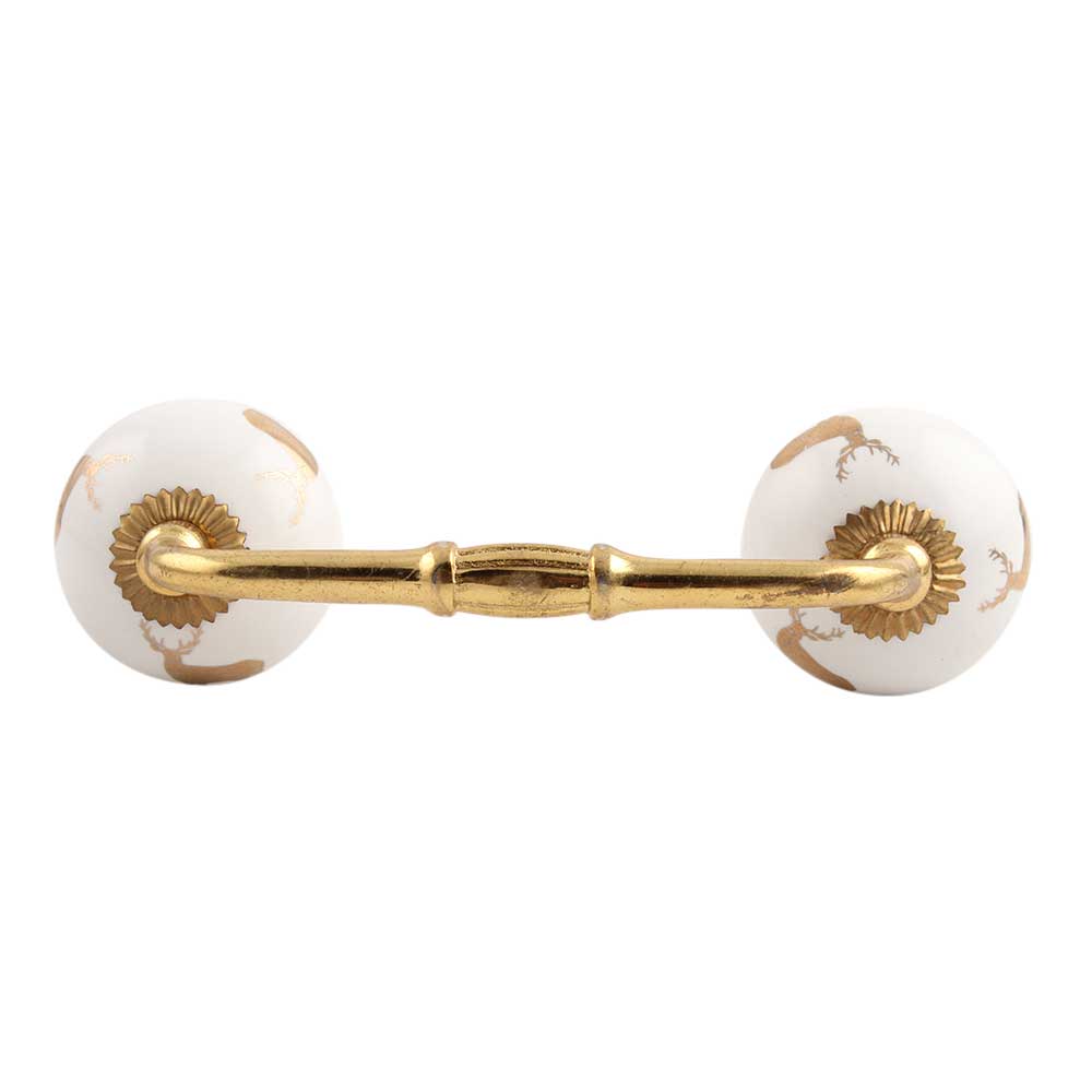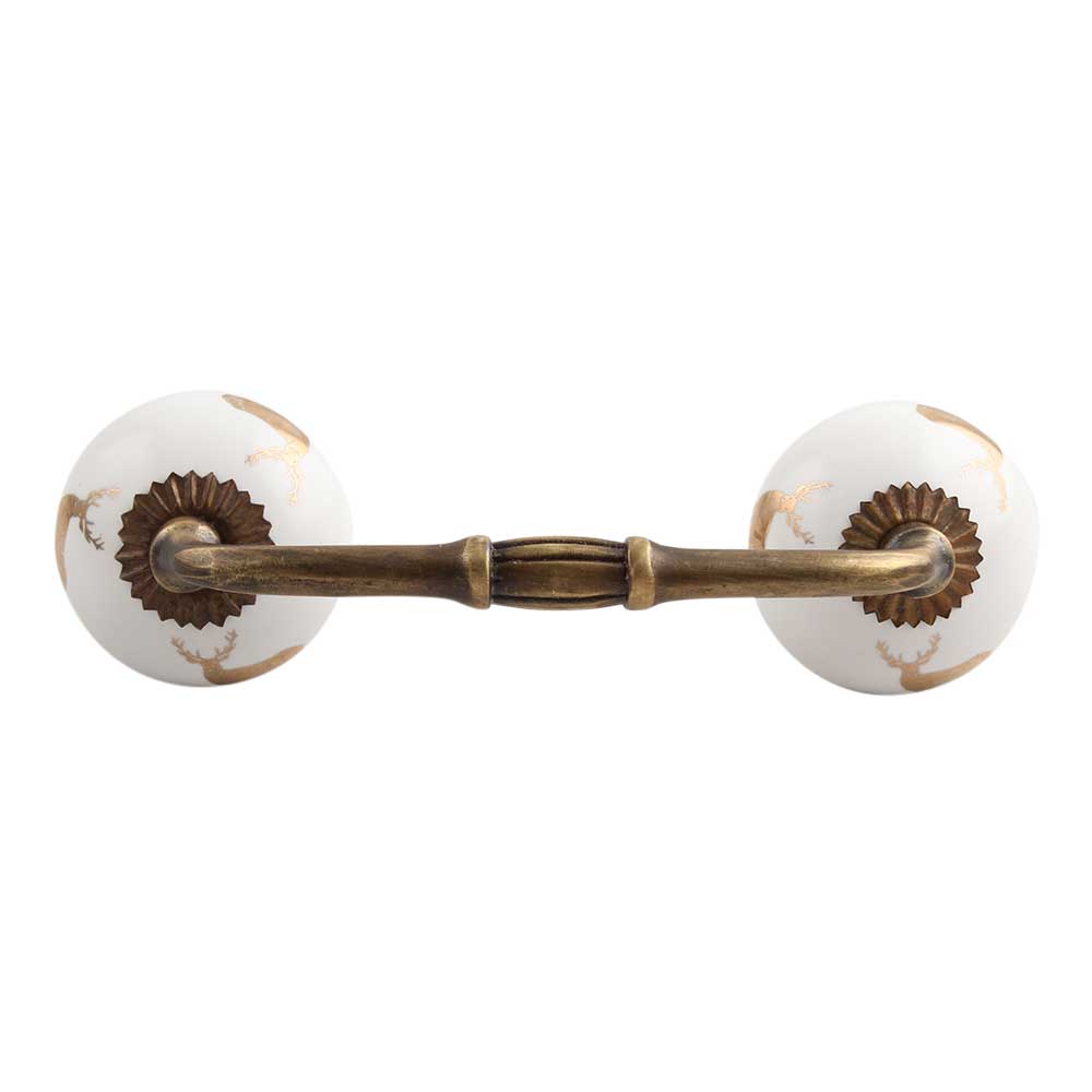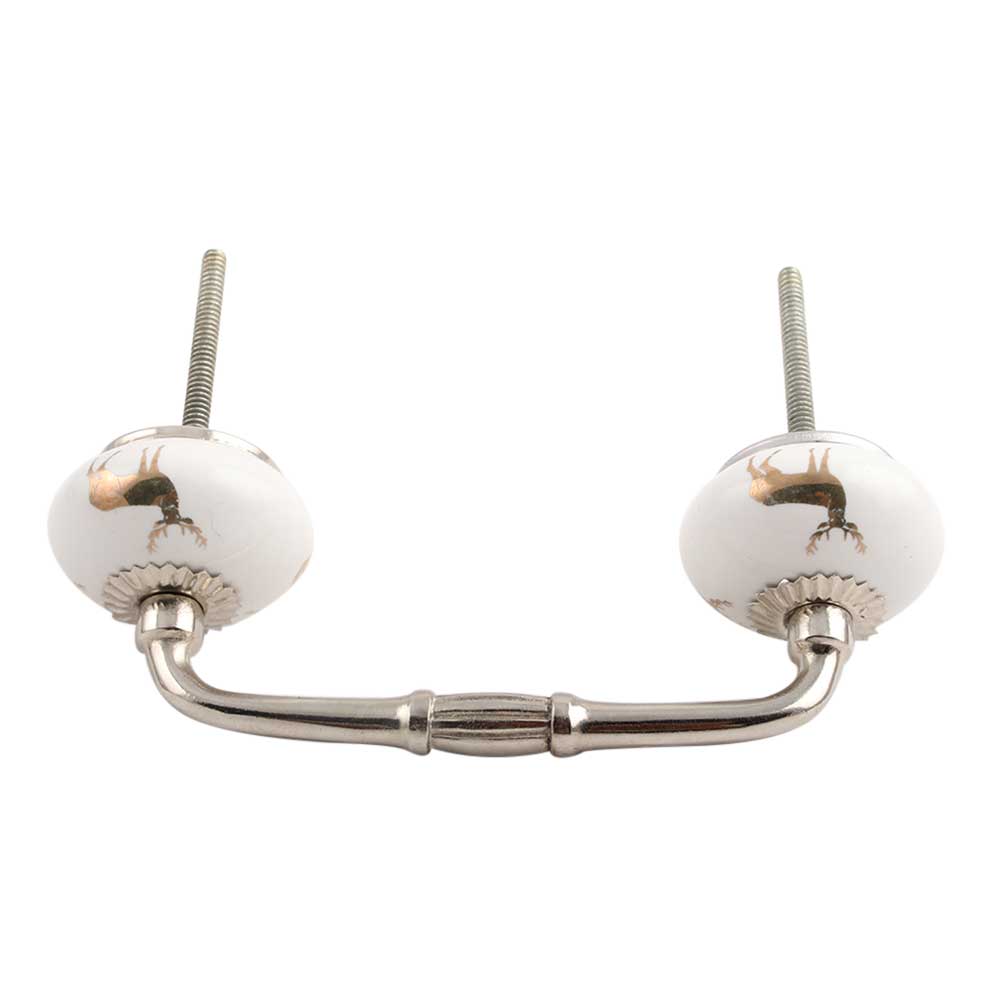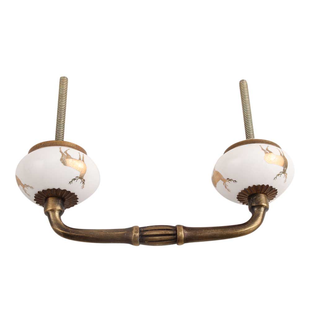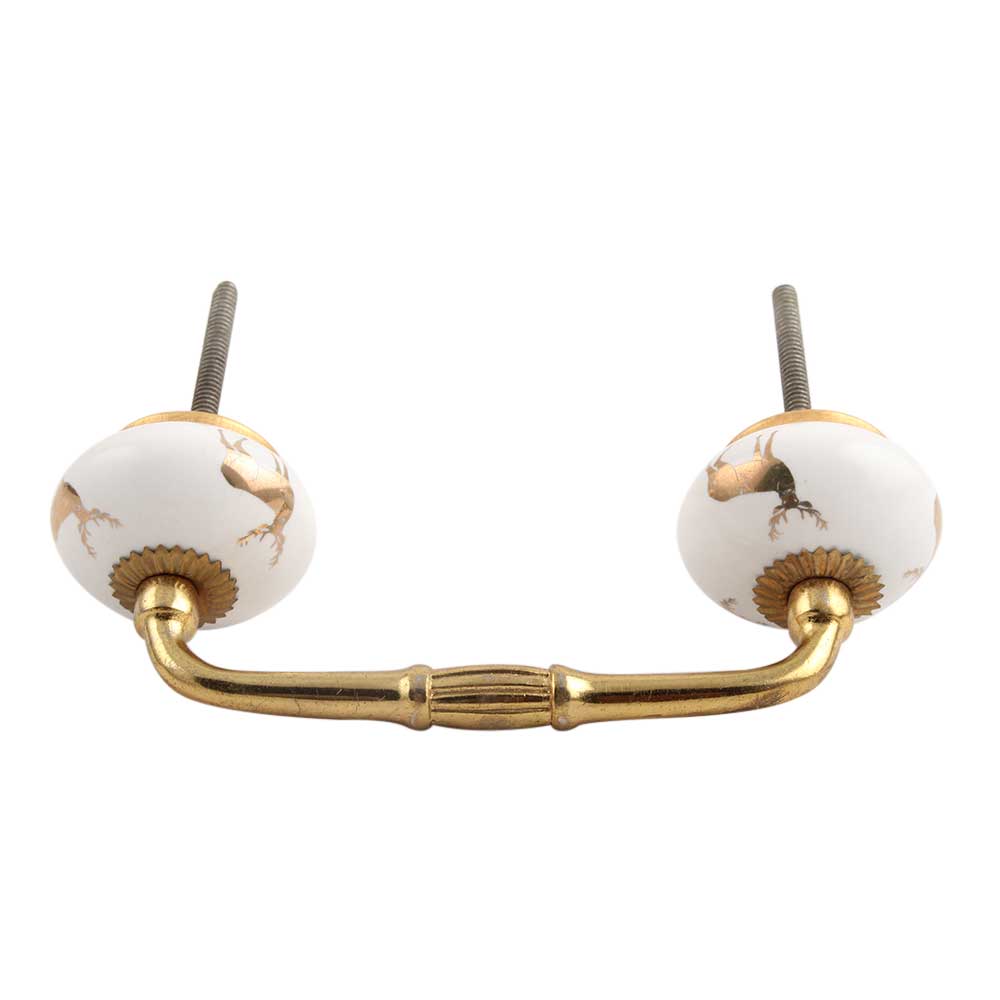 Golden Standing Rein Deer Pattern Ceramic Bridge Handle. Ideal for Drawer, Dresser, Cabinet, Wardrobe, Cupboard and Almirah.