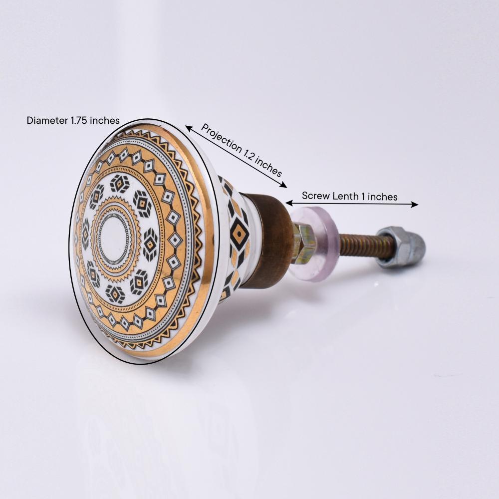 The Golden Wheel Pattern Flat Ceramic Cabinet Knob - Pack of 6 adds a touch of sophistication and charm to any piece of furniture. Featuring a stunning golden wheel pattern etched onto the flat ceramic surface, these knobs offer a refined and elegant look for cabinets, dressers, drawers, and more. Whether you’re renovating your kitchen, bathroom, or bedroom, these knobs provide a sleek, modern touch that enhances any décor style. The luxurious gold accents and smooth ceramic finish make these knobs a perfect blend of beauty and functionality.