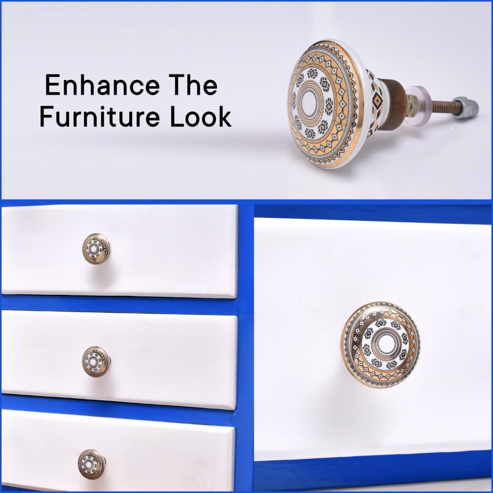 These versatile knobs are perfect for any room in your home. From the kitchen to the bathroom, bedroom to the living room, the Golden Wheel Pattern Flat Ceramic Cabinet Knob can be used to update cabinets, drawers, dressers, and more. Their elegant design and golden accents add a touch of luxury to any space, making them a versatile and stylish choice for any furniture piece in need of a facelift.