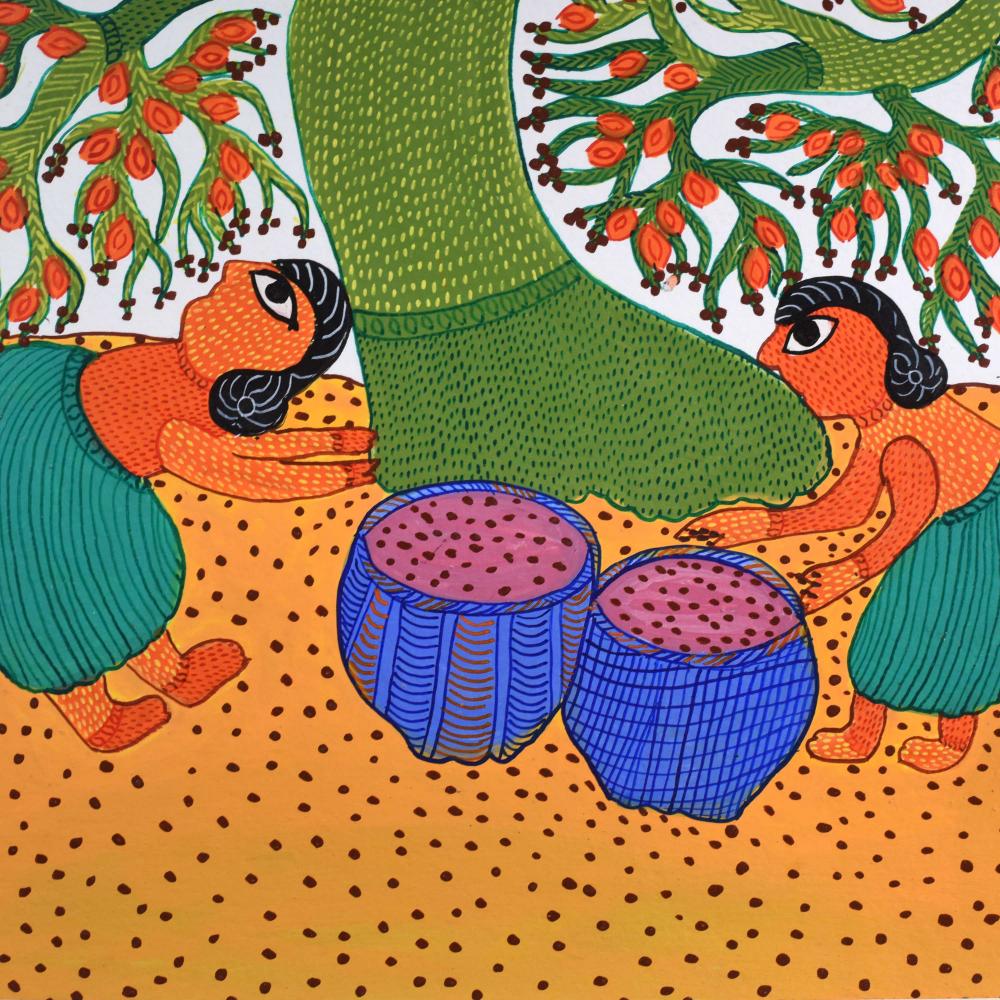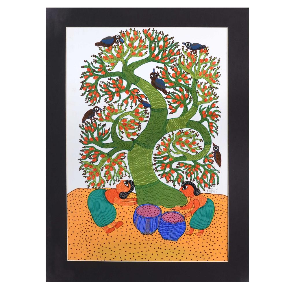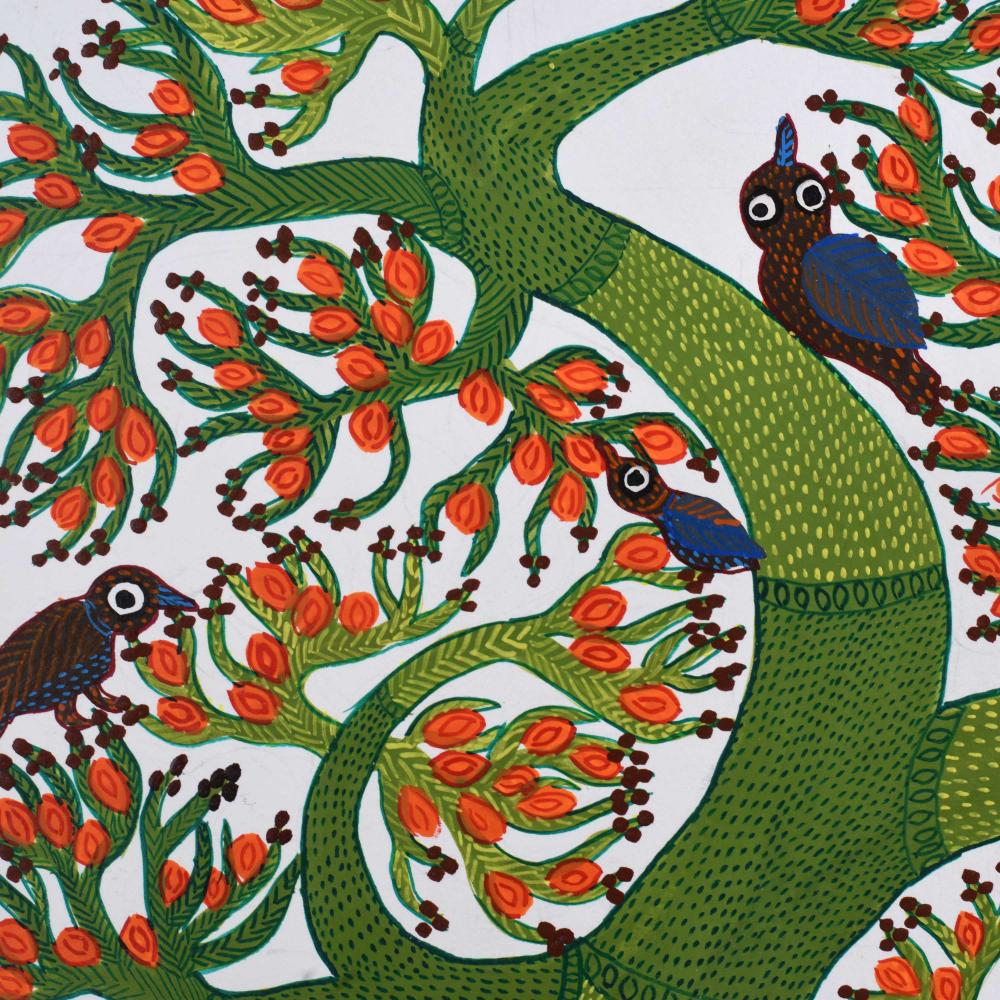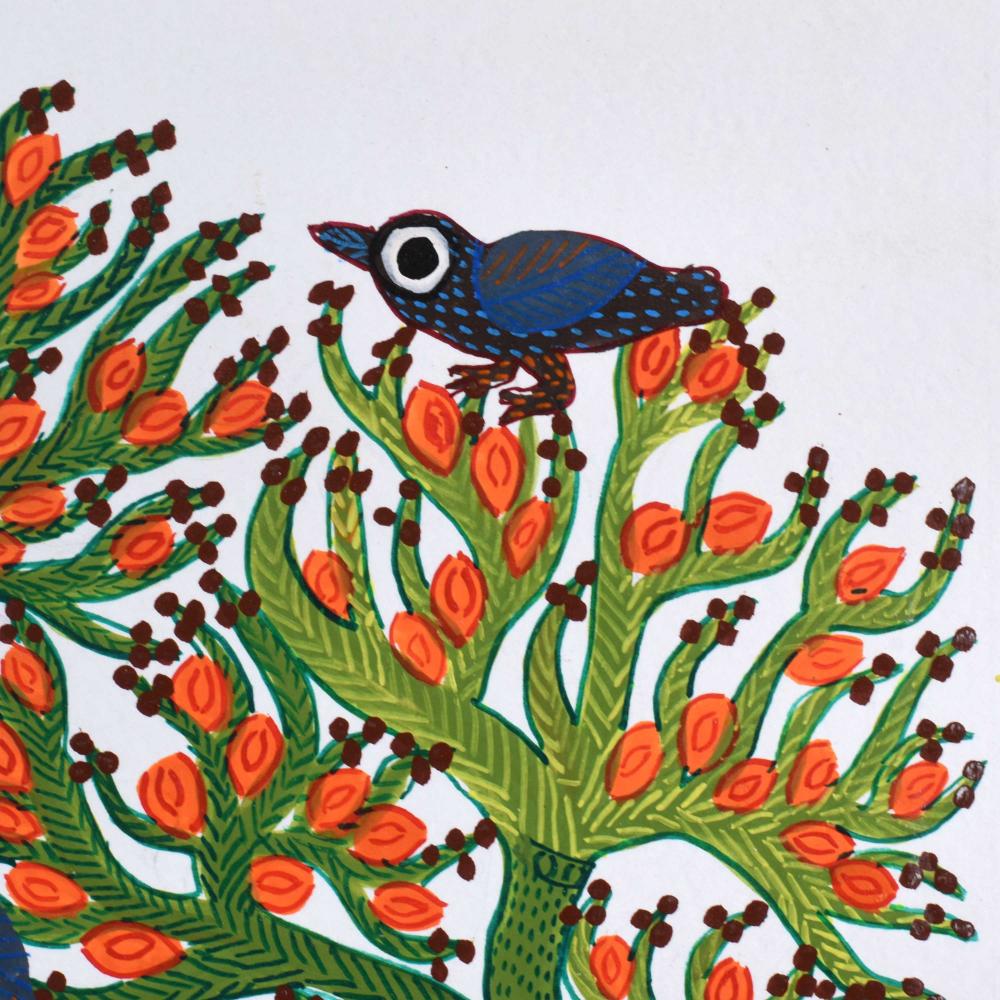 - Cultural storytelling: The painting incorporates animals and natural elements that reflect the spiritual and cultural beliefs of the Gond people.