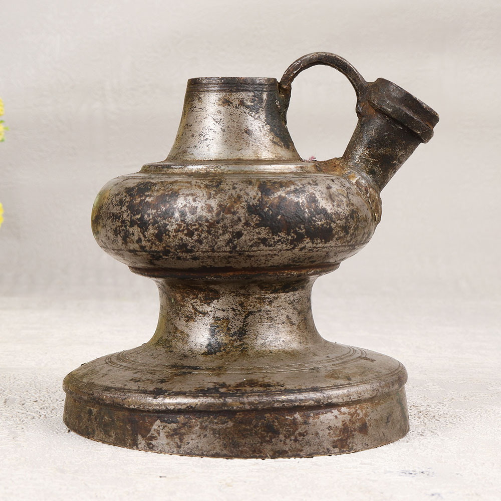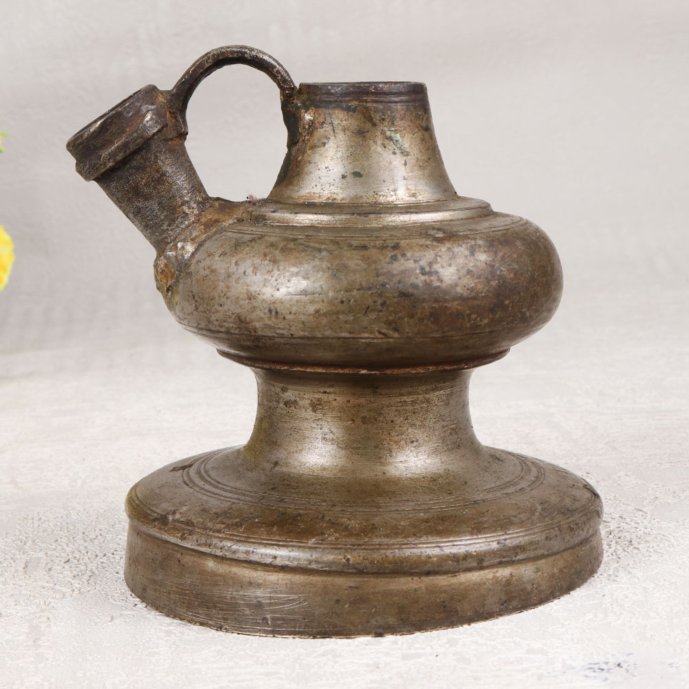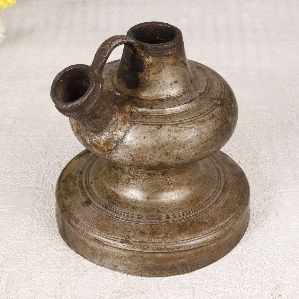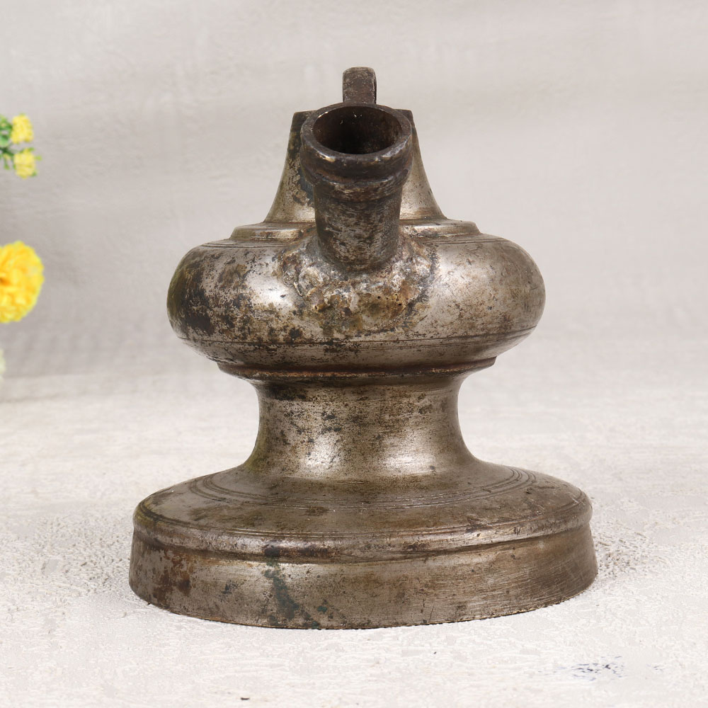 Immerse yourself in the timeless allure of this exquisite Vintage Brass Hookah Base that is a masterpiece meticulously crafted by highly talented Indian artisans. Handmade from high-quality brass, the base boasts a captivating antique gray finish that adds a touch of vintage elegance to any space. The surface is adorned with intricate engravings, showcasing the artistry and craftsmanship that define this unique piece. Versatile in its charm, this hookah base transcends its traditional use and emerges as a stunning indoor flower pot, providing a distinctive and opulent touch to your home, office, restaurant, hotel, or cafe. Its regal presence transforms any setting into a haven of sophistication and cultural richness. Beyond mere decor, this exceptional piece is an ideal addition to any vintage collection, a testament to the enduring beauty of Indian craftsmanship. Celebrate special moments with your family, friends or relatives by gifting them this extraordinary hookah base on auspicious occasions or festive gatherings.