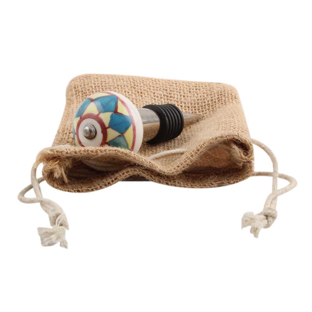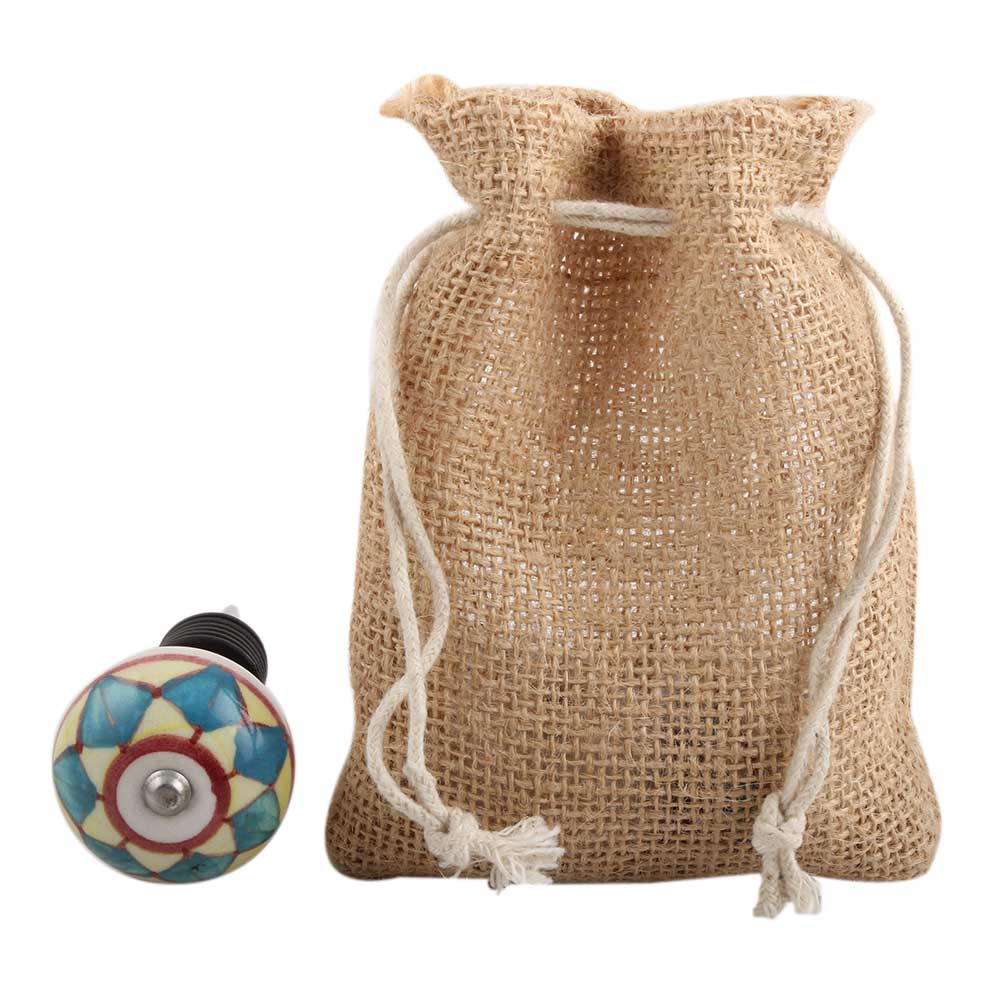 Green And yellow Ceramic Wine Stopper.zinc alloy wine bottle stopper with attractive Jute Bag Packaging.