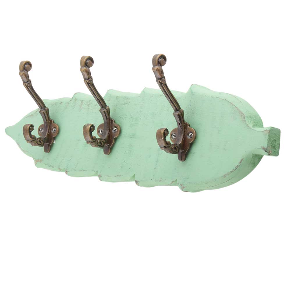 Green Antique Small Wall Wooden Iron Hooks. A Perfect Complement to the Soft Tone of the Wood are these White Traditional Hat & Coat Hook Made of Genuine Porcelain and Brass. It can be use to Hang Jewellery, Leashes, Towels, Scarves, Light Weight Sweaters, Caps Etc.