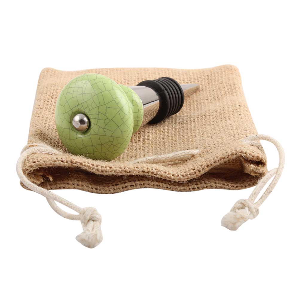 Green And Black Crackle Ceramic Wine Stopper.zinc alloy wine bottle stopper with attractive Jute Bag Packaging.