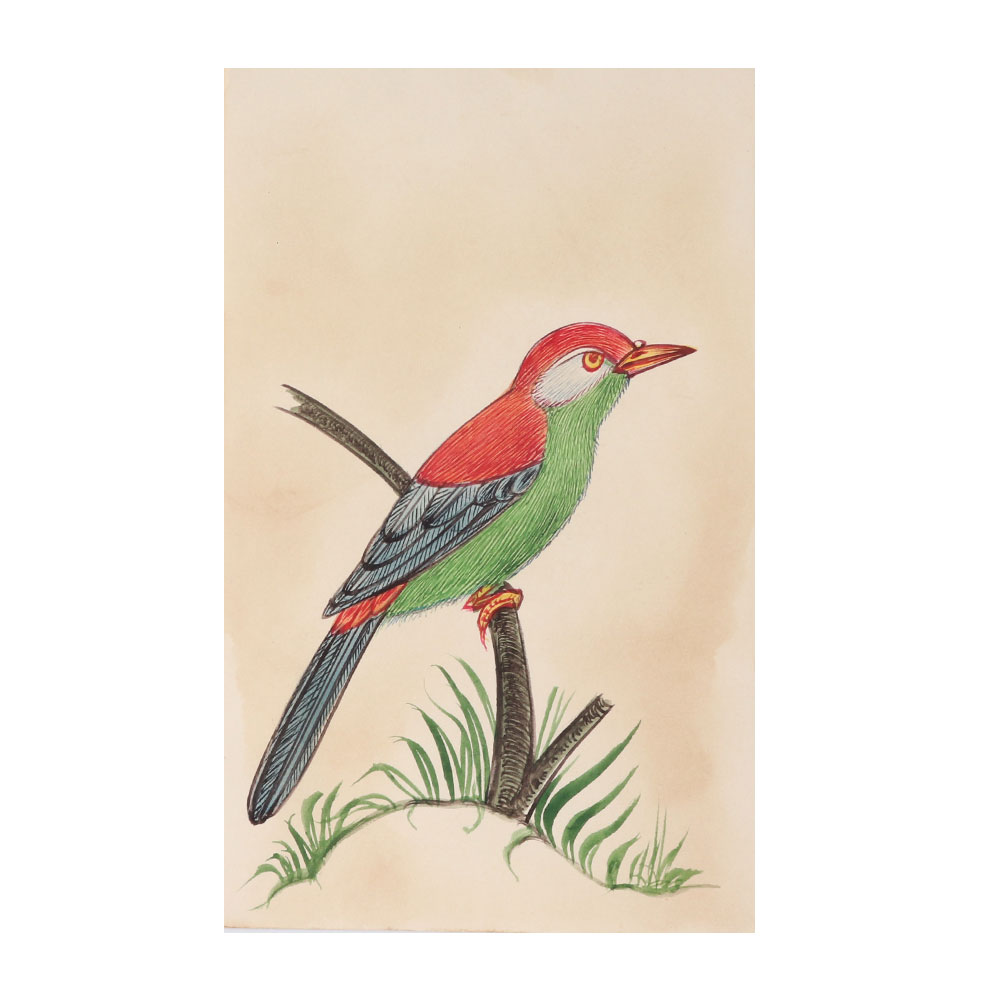This miniature watercolour bird painting uses the best colour combinations and most accurate detail to evoke a sense of the delight and attractiveness of the land. The artist expertly captured the bird in its natural shape as it was perched on a branch of a tree, highlighting its attractiveness by emphasising the main feature against a blurred background. It is a beautiful tiny artwork of a tropical bird for your home. The artwork has incredible intricacy. In addition to bringing the marvels of nature closer to you, this artwork will inspire reflection in viewers about the amount of concentration this lovely bird displays before diving at its prey.
