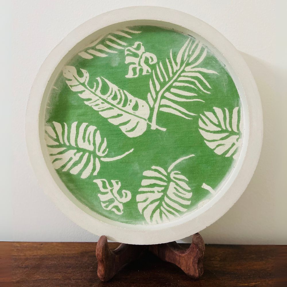 Add an artistic touch to your living space with this handcrafted Green Cemented Plate for Home Decor. Designed with a soothing green base and intricate leaf-inspired motifs, this decorative plate blends traditional charm with modern minimalism. Perfect for displaying on coffee tables, dining setups, or wall arrangements, it enhances your interiors with elegance and style.