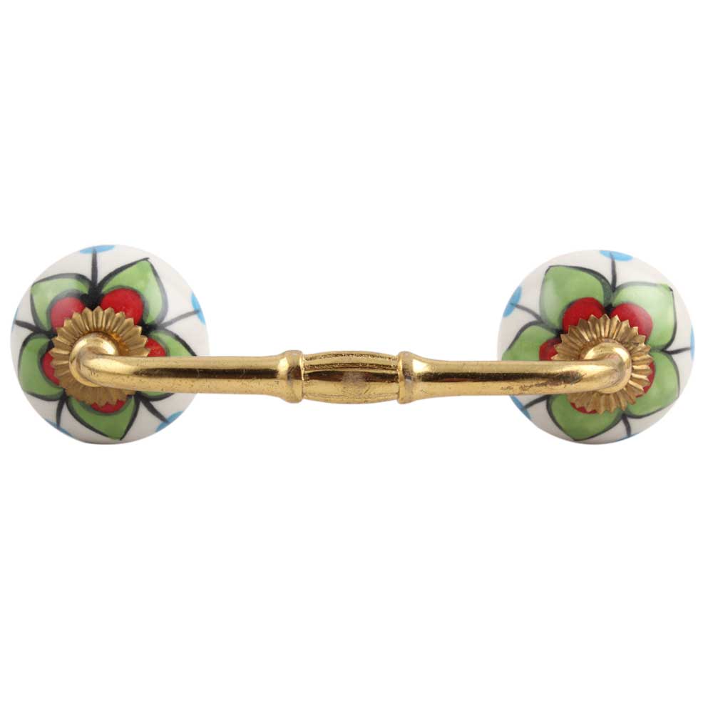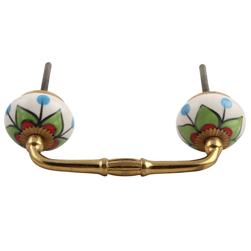 Green Clove Flower Ceramic Bridge Handle. Ideal for Drawer, Dresser, Cabinet, Wardrobe, Cupboard and Almirah.