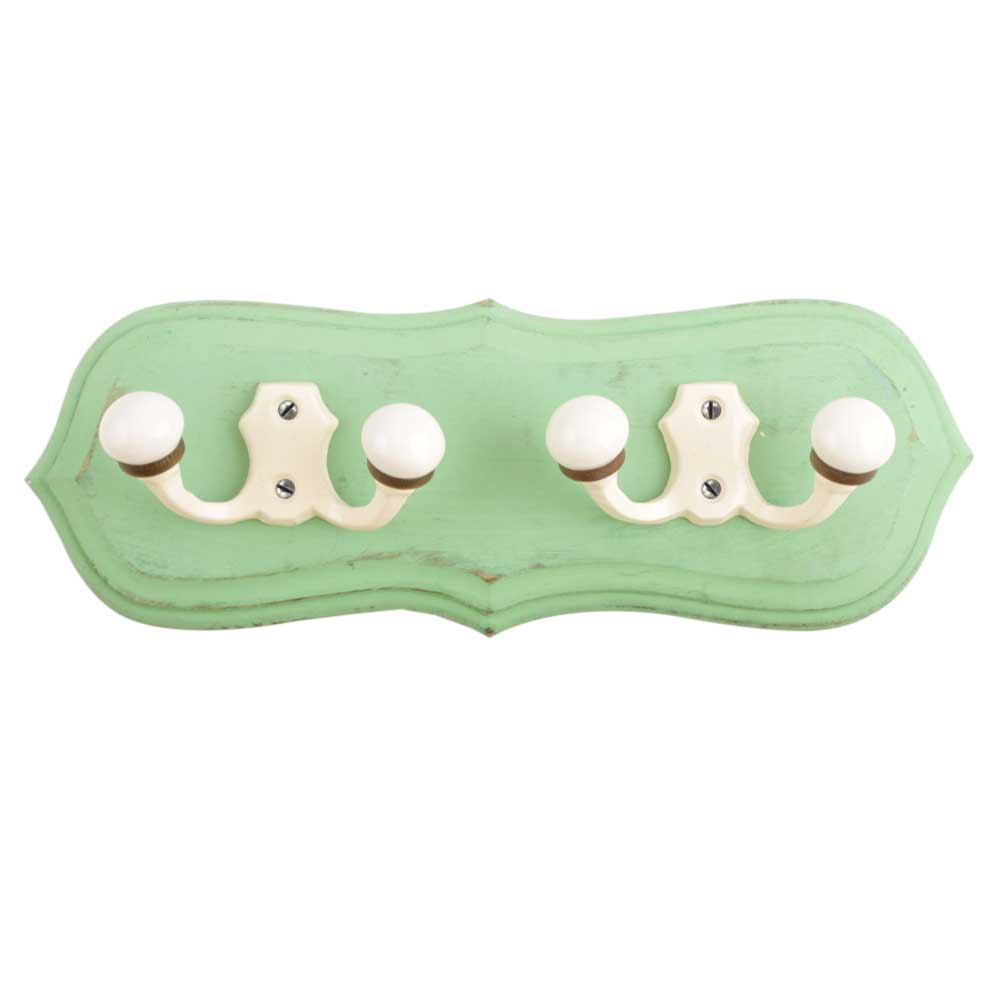 Green Cream Double Loop Ceramic Iron Wooden Hooks. A Perfect Complement to the Soft Tone of the Wood are these White Traditional Hat & Coat Hook Made of Genuine Porcelain and Brass. It can be use to Hang Jewellery, Leashes, Towels, Scarves, Light Weight Sweaters, Caps Etc.