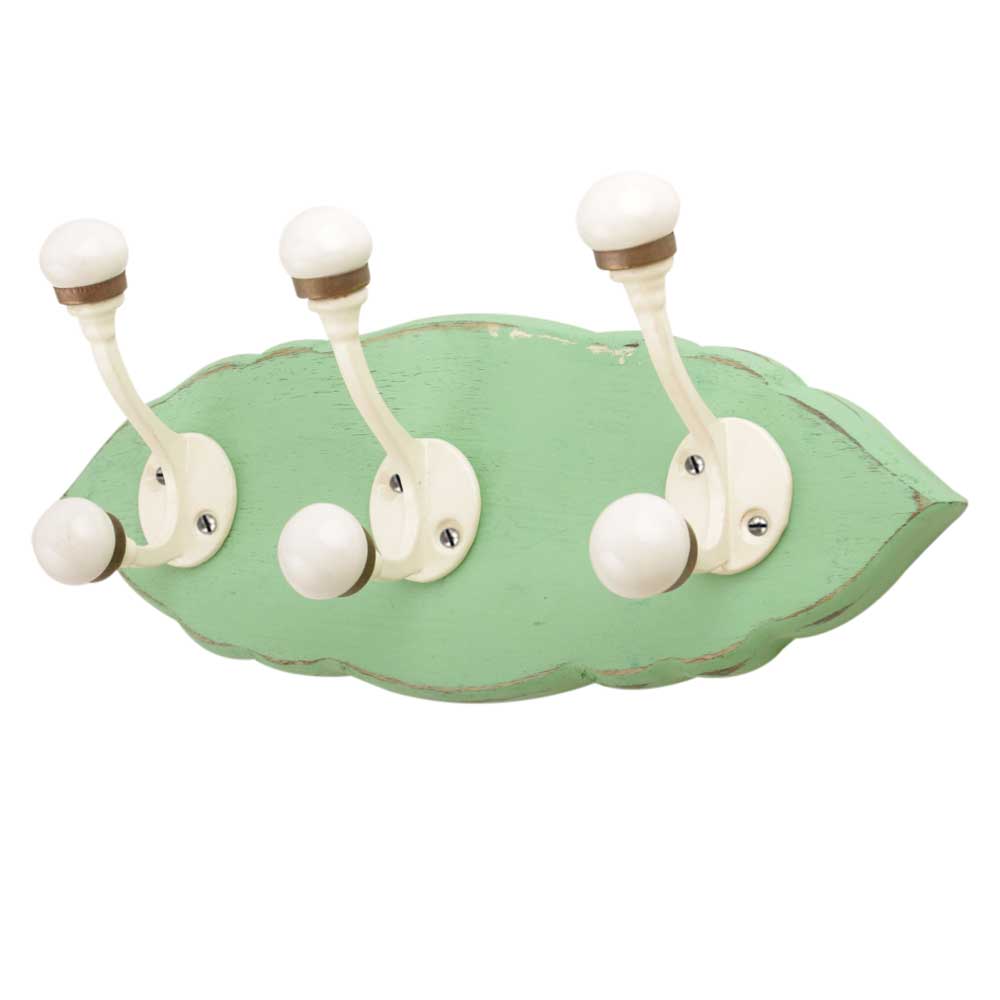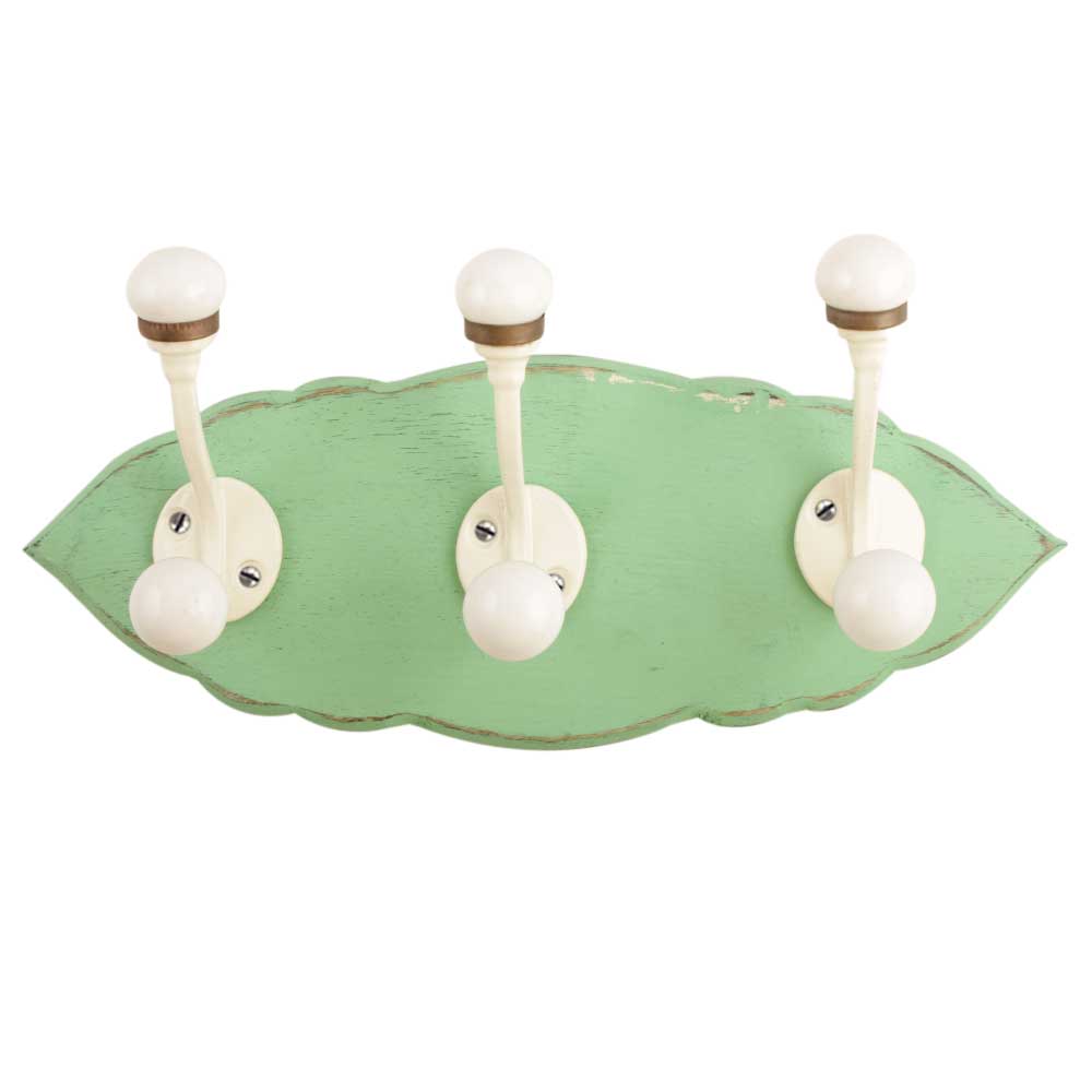 Green Cream Double Loop Ceramic Iron Wooden Hooks. A Perfect Complement to the Soft Tone of the Wood are these White Traditional Hat & Coat Hook Made of Genuine Porcelain and Brass. It can be use to Hang Jewellery, Leashes, Towels, Scarves, Light Weight Sweaters, Caps Etc.