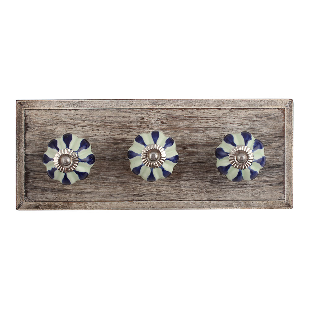 Green Drop Ceramic Wooden Hook. A Perfect Complement to the Soft Tone of the Wood are these White Traditional Hat & Coat Hook Made of Genuine Porcelain and Brass. It can be use to Hang Jewellery, Leashes, Towels, Scarves, Light Weight Sweaters, Caps Etc.