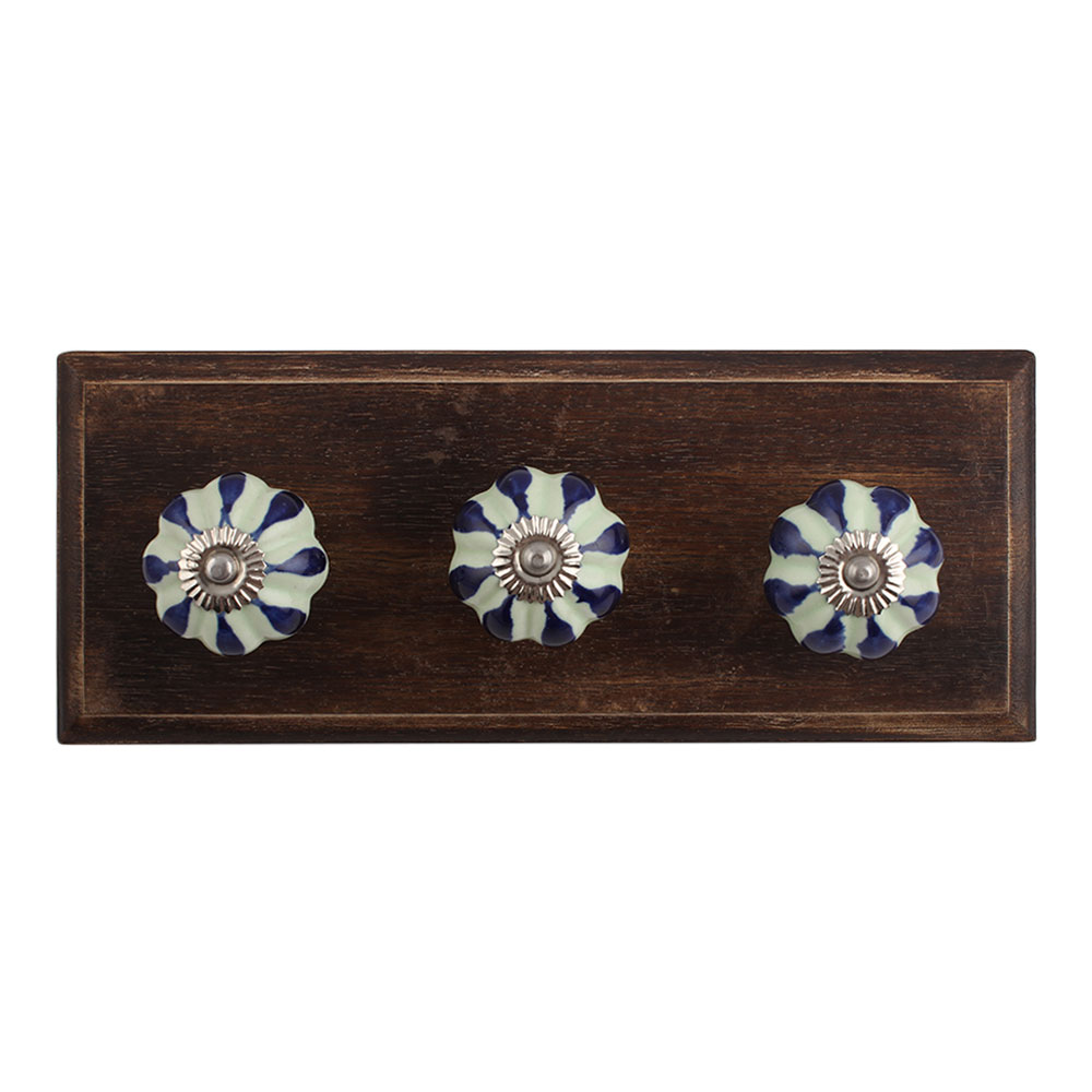 Green Drop Ceramic Wooden Hook. A Perfect Complement to the Soft Tone of the Wood are these White Traditional Hat & Coat Hook Made of Genuine Porcelain and Brass. It can be use to Hang Jewellery, Leashes, Towels, Scarves, Light Weight Sweaters, Caps Etc.
