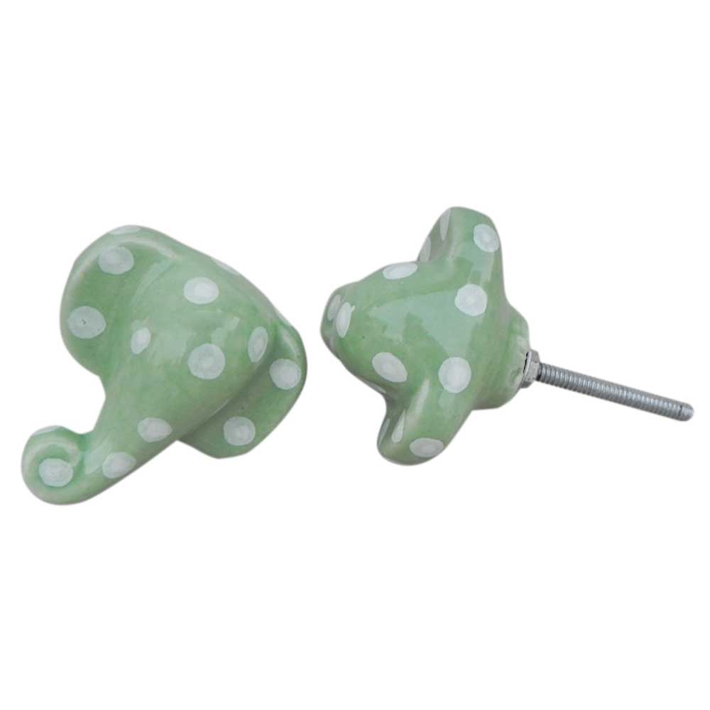This green elephant face kids knob is suitable for any wardrobe, chest of drawers bedroom furniture, set of cupboards, dresser or kitchen cabinets. This modern door knob is rust free, thick and long lasting hardware. Supplied with Two Washer, Two Nuts and One Nut Cap