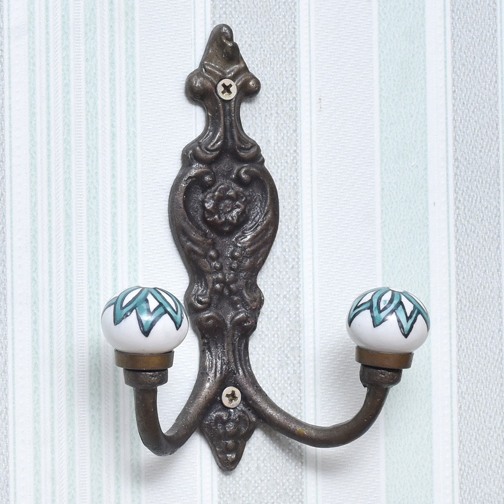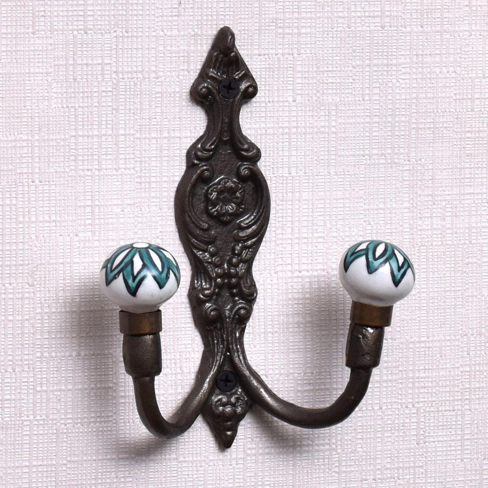 Green Floral Ceramic Iron Hook. When Put on Wall or Cabinet It Gives A Sturdy Look. This Hook is Strong Enough to Hold Your Cloths, Keys, Tea Cups, Coffee Mugs, Hand Towels Etc