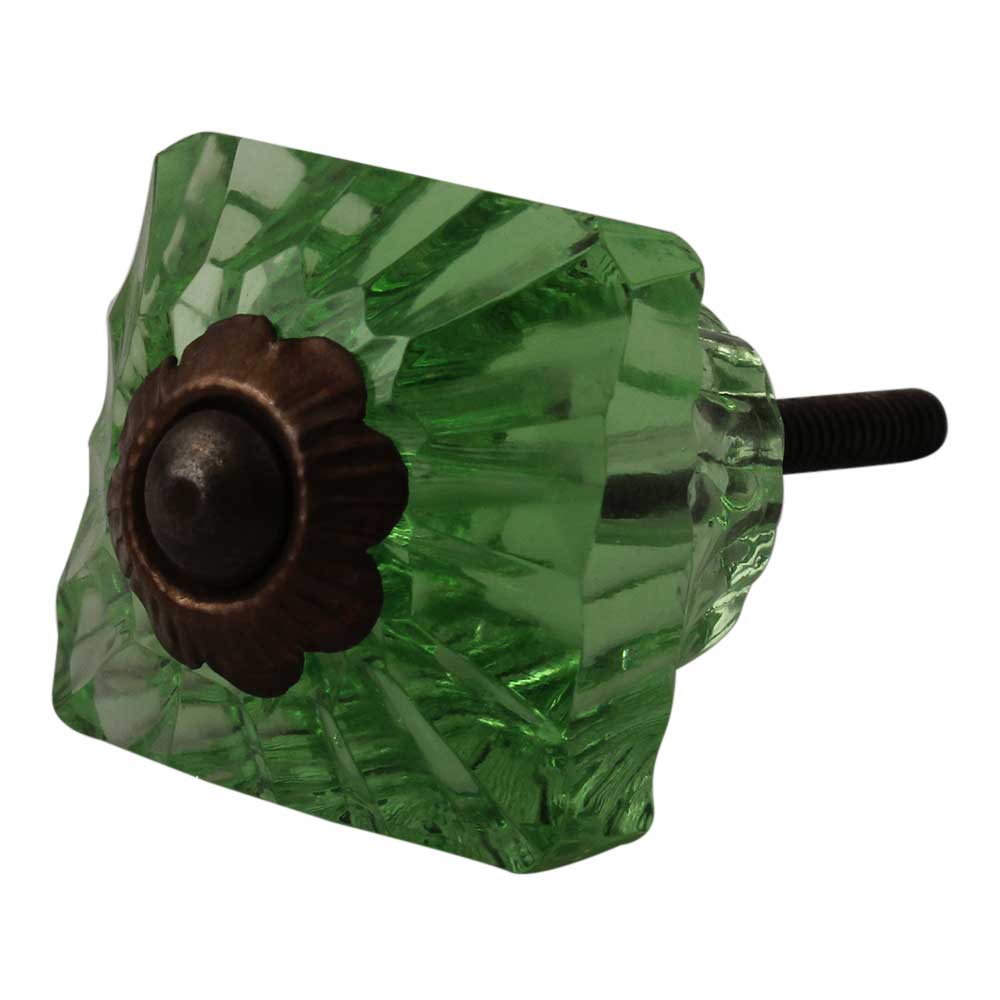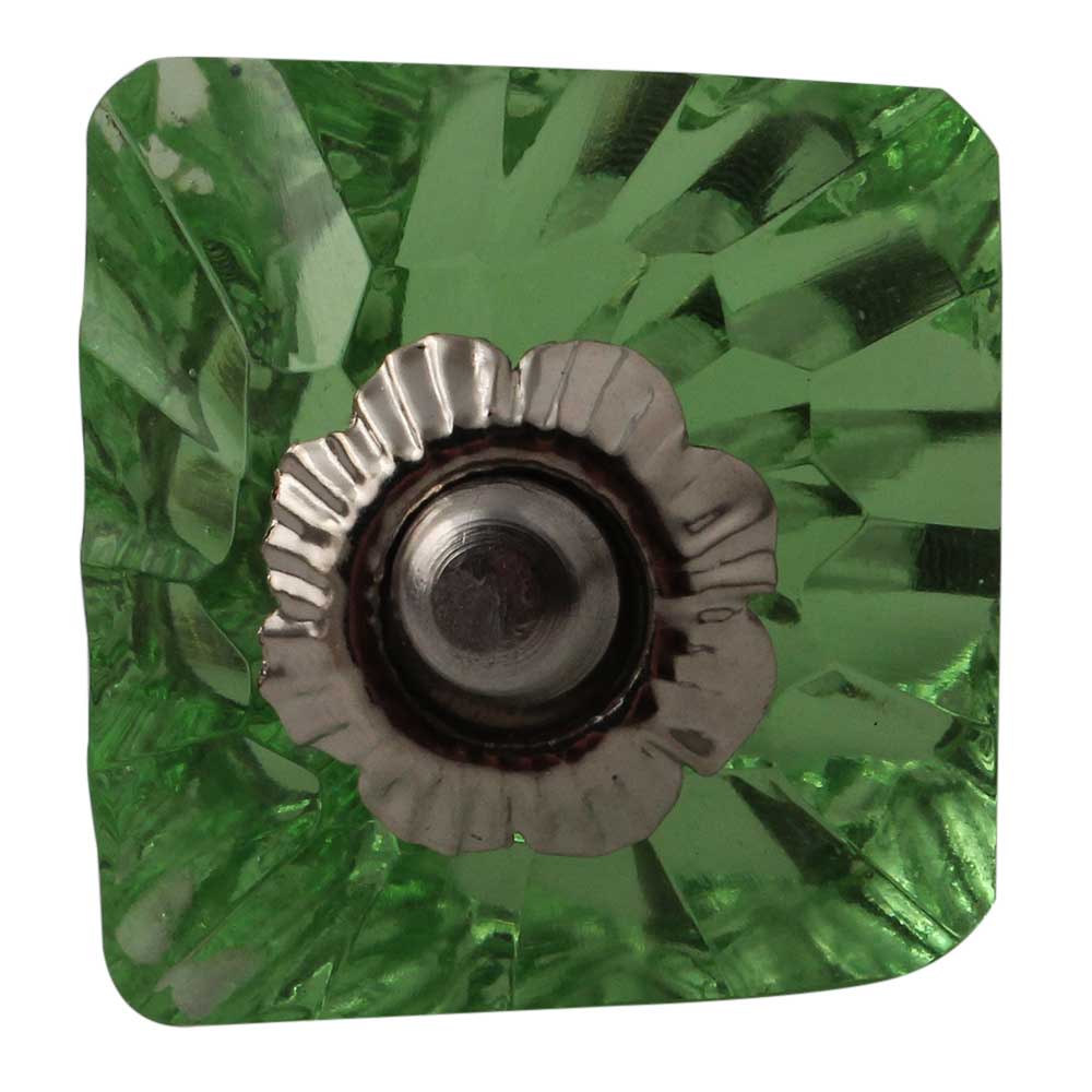 Green Glass Square Cut Knobs. Ideal for Drawer, Dresser, Cabinet, Wardrobe, Cupboard and almirah