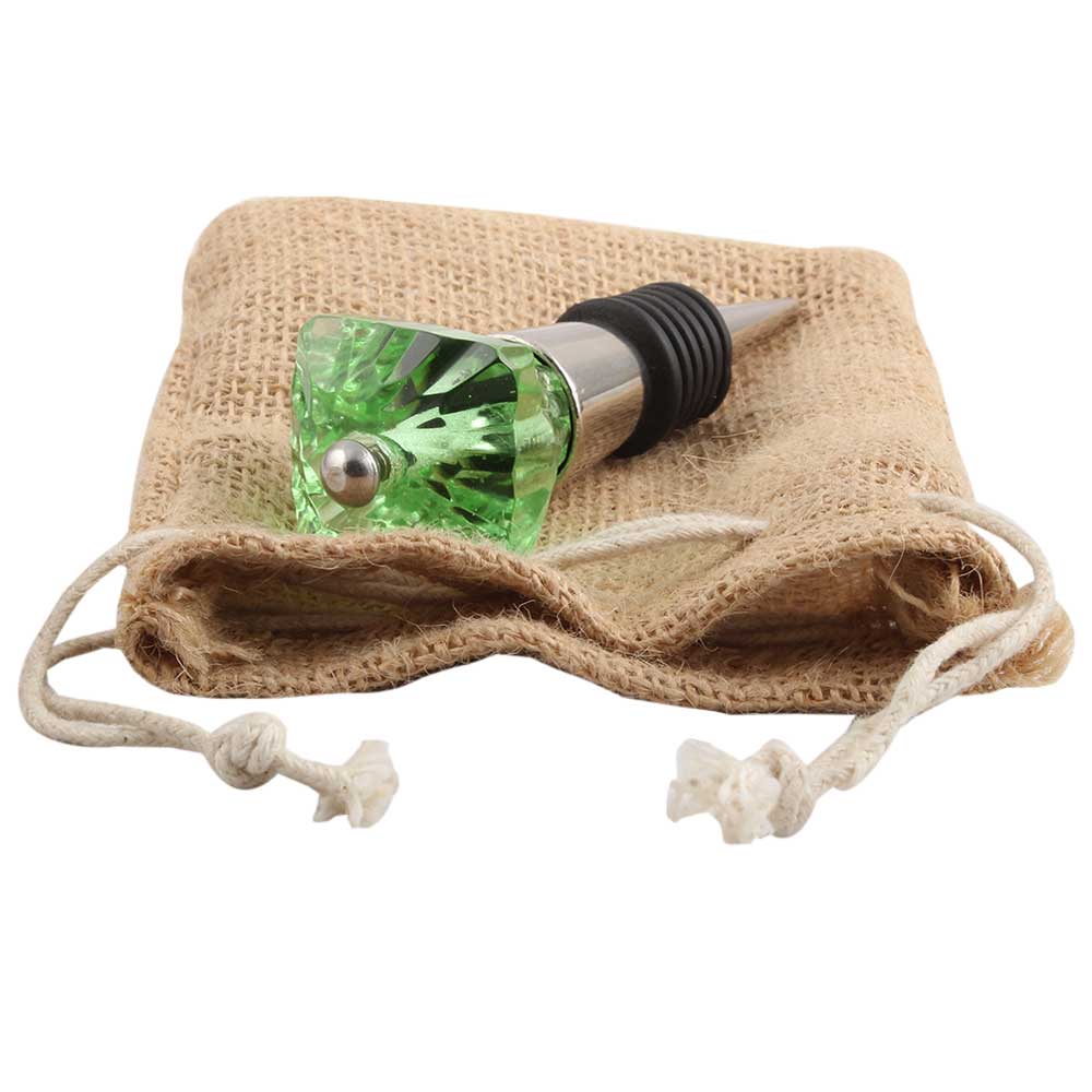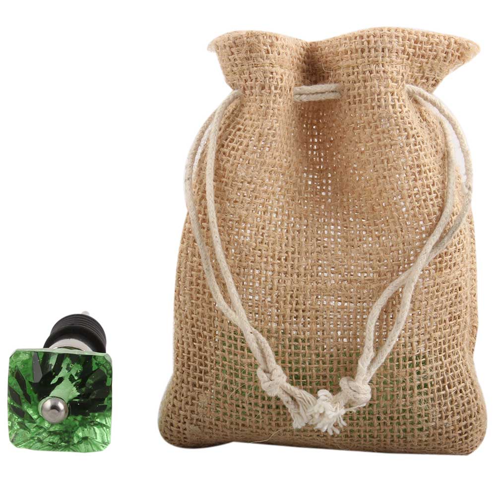Green Glass Square Cut Wine Stopper.zinc alloy wine bottle stopper with attractive Jute Bag Packaging.