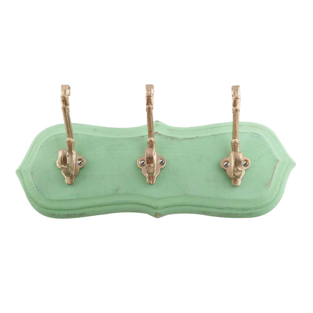 Green And Golden Small Wall Wooden Iron Hooks. A Perfect Complement to the Soft Tone of the Wood are these White Traditional Hat & Coat Hook Made of Genuine Porcelain and Brass. It can be use to Hang Jewellery, Leashes, Towels, Scarves, Light Weight Sweaters, Caps Etc.