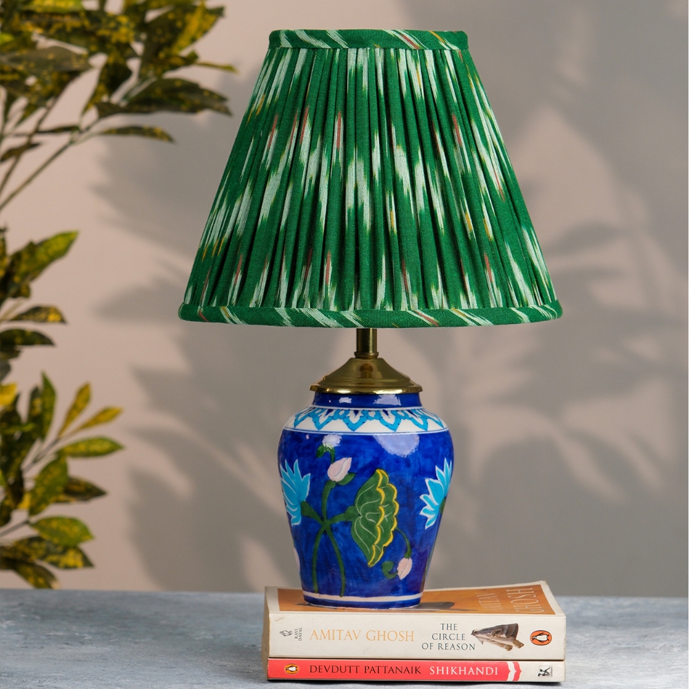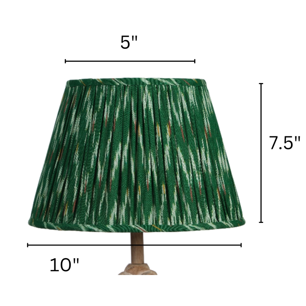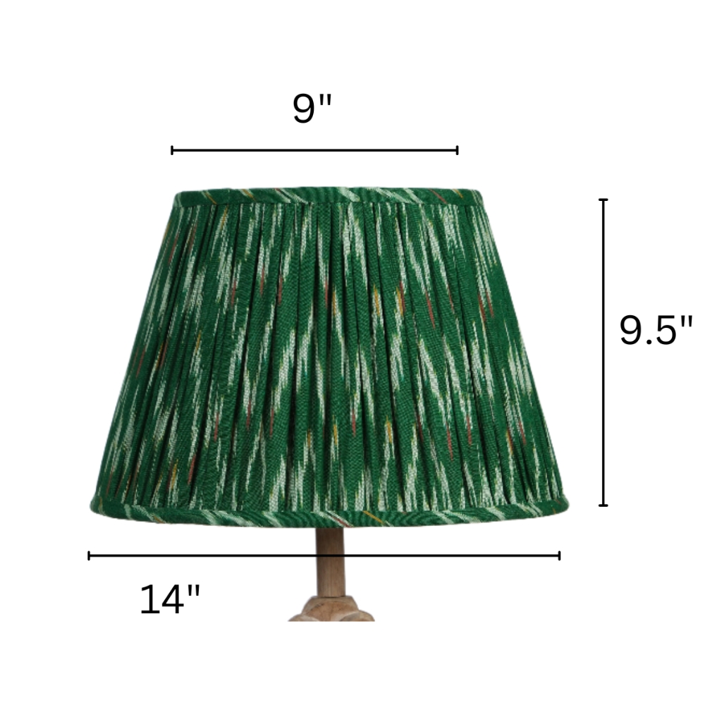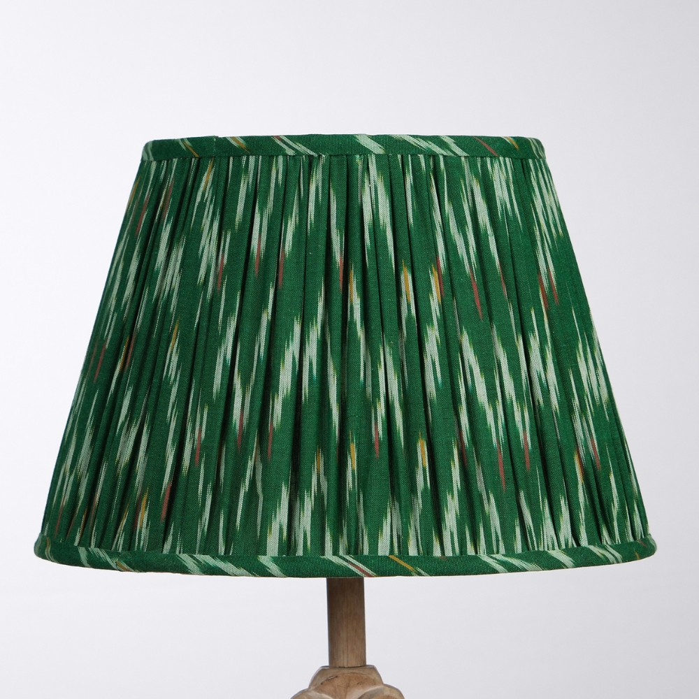 Green lampshade weaved in Ikat pattern brings freshness of outdoors indoor. Let your corner get a dose of greenery with this pretty shade. Available in 3 sizes.