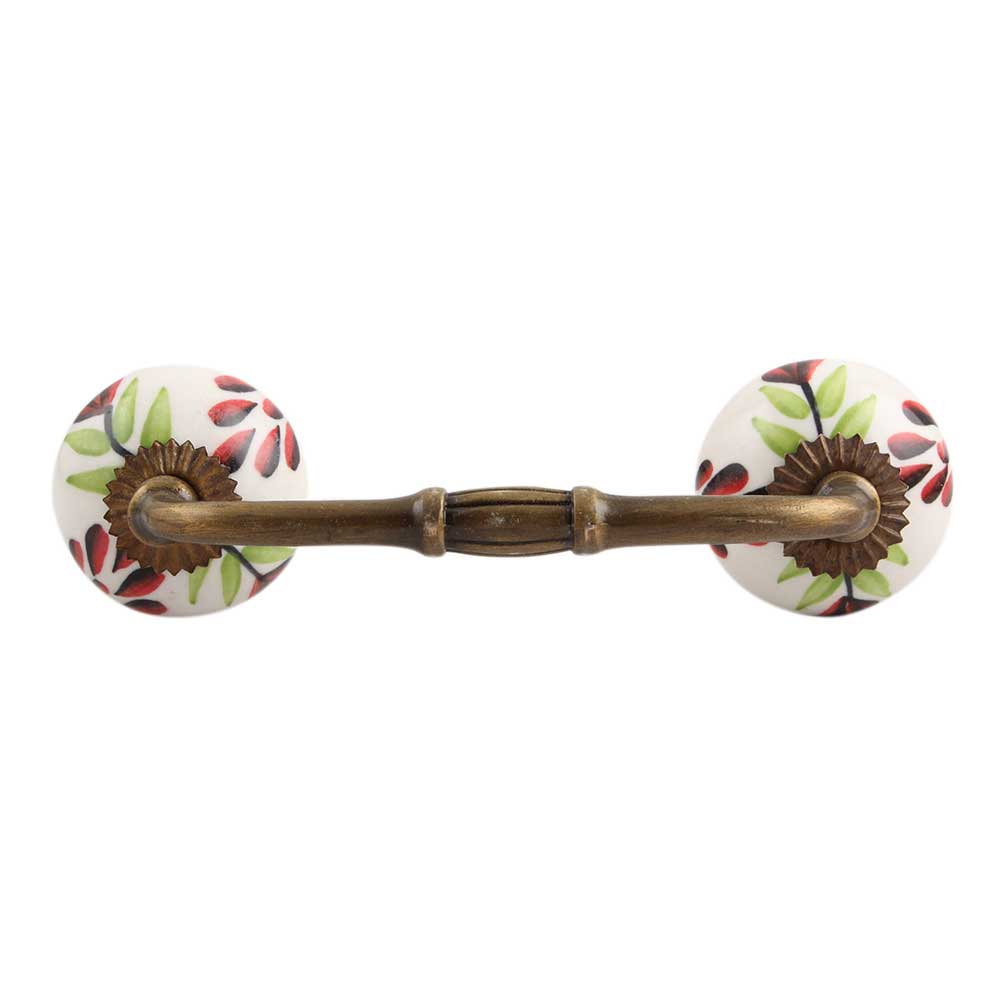 Green Leaf Ceramic Bridge Handle. Ideal for Drawer, Dresser, Cabinet, Wardrobe, Cupboard and Almirah.