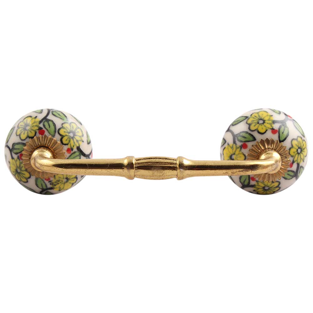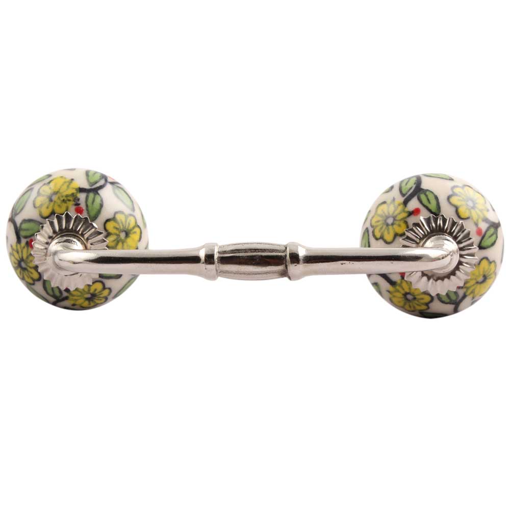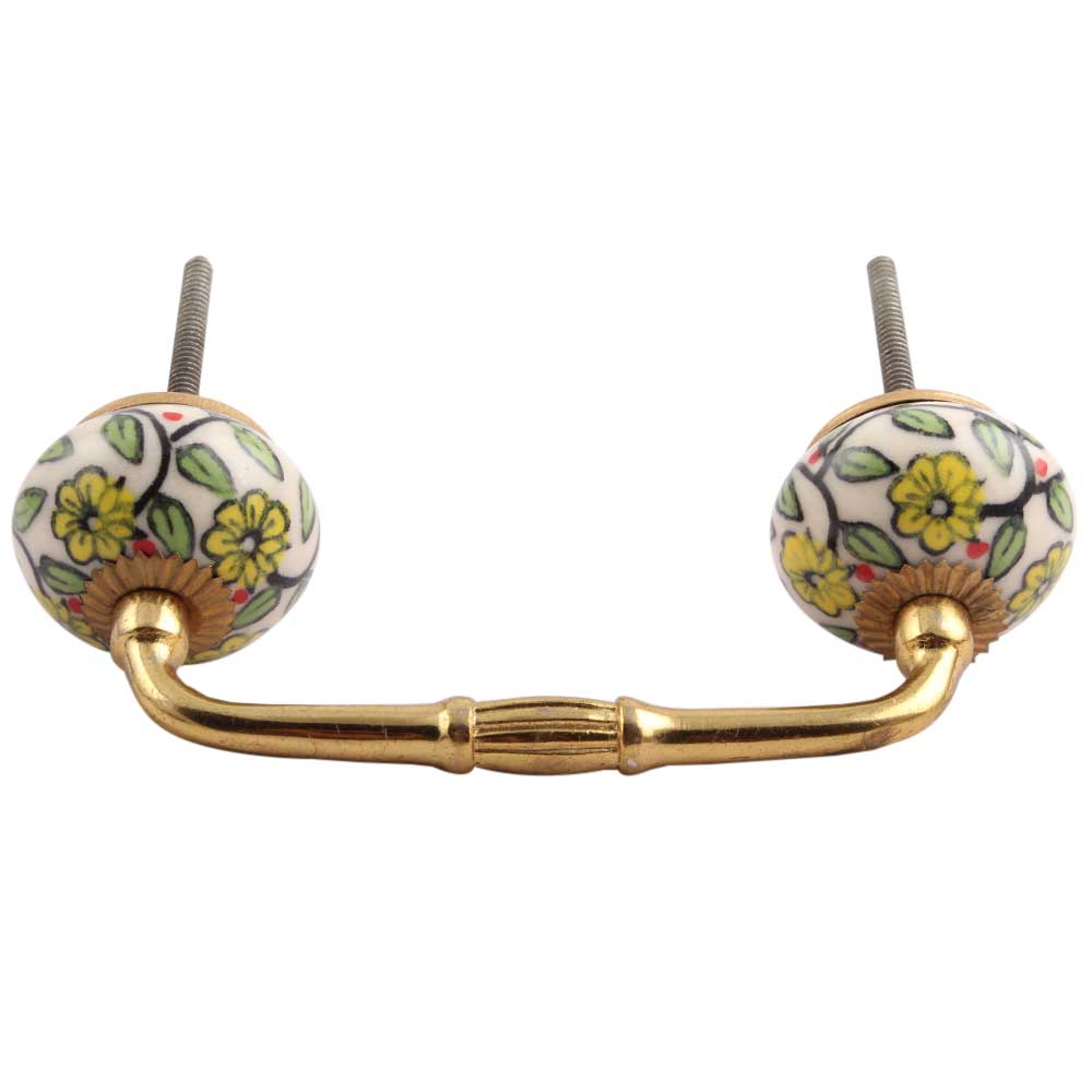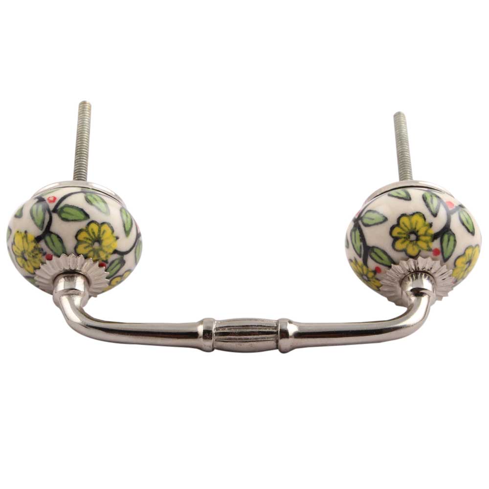 Green Leaf Floral Ceramic Bridge Handle. Ideal for Drawer, Dresser, Cabinet, Wardrobe, Cupboard and Almirah.