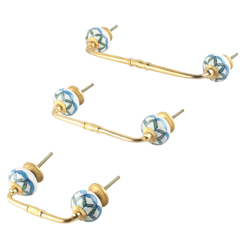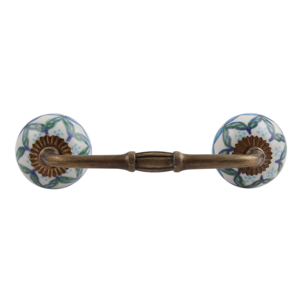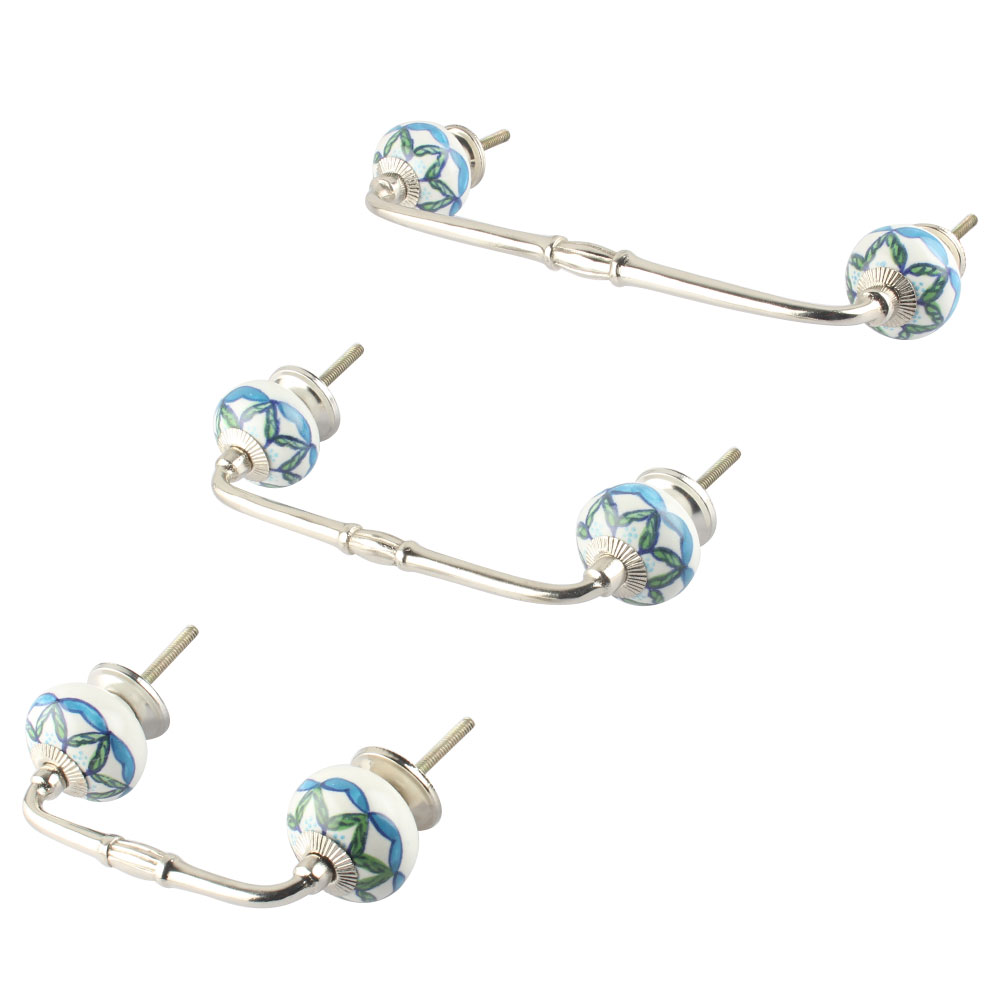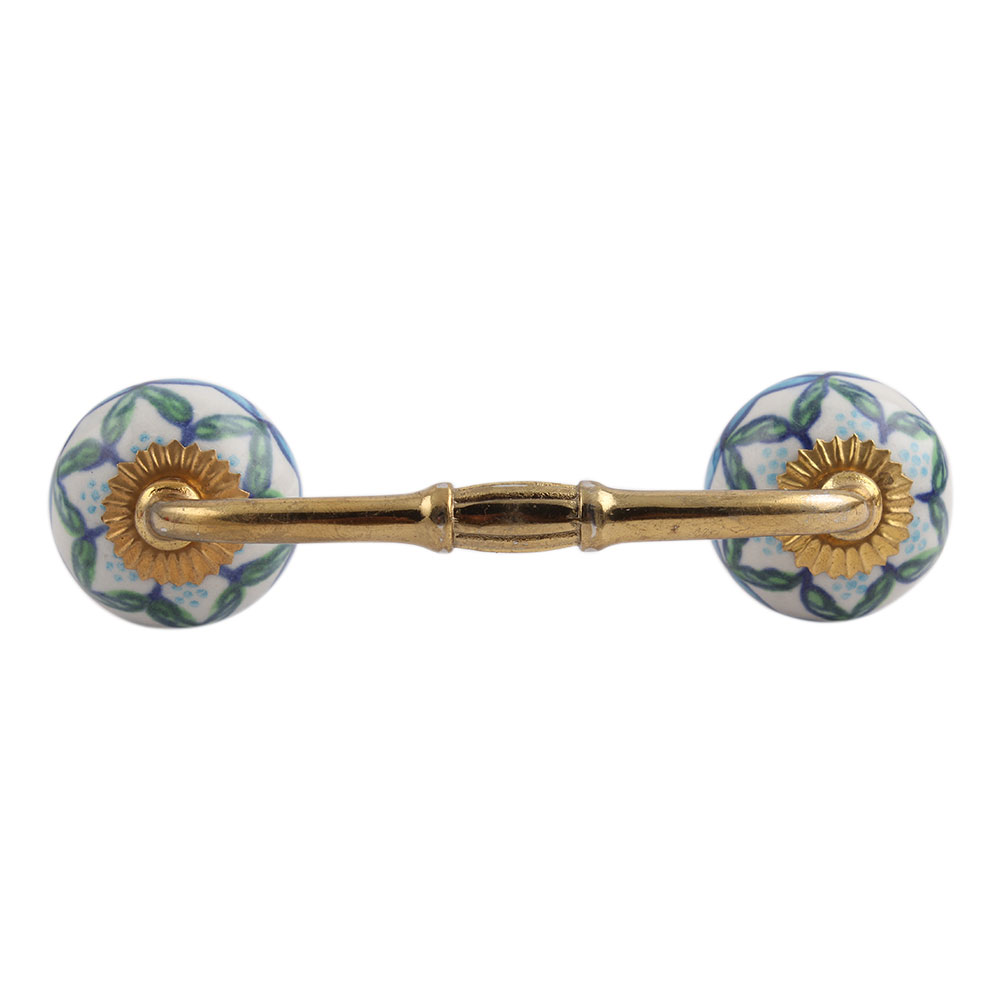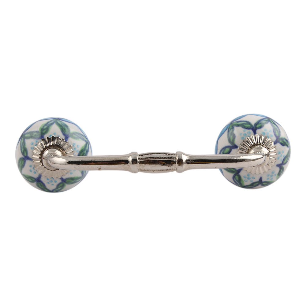 Green Leaves Ceramic Bridge Handle. Ideal for Drawer, Dresser, Cabinet, Wardrobe, Cupboard and Almirah.