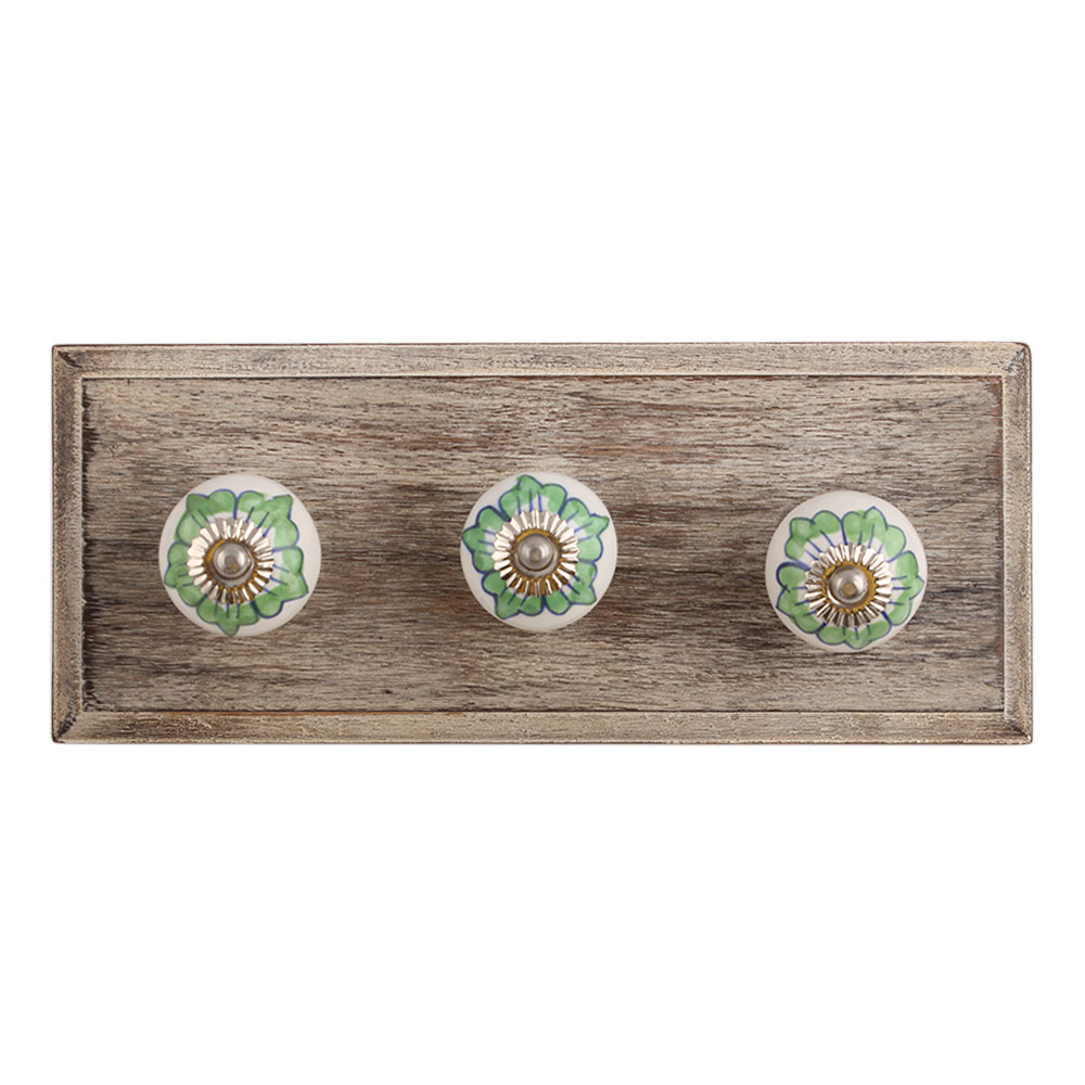 Green Lisianthus Ceramic Wooden Hook. A Perfect Complement to the Soft Tone of the Wood are these White Traditional Hat & Coat Hook Made of Genuine Porcelain and Brass. It can be use to Hang Jewellery, Leashes, Towels, Scarves, Light Weight Sweaters, Caps Etc.