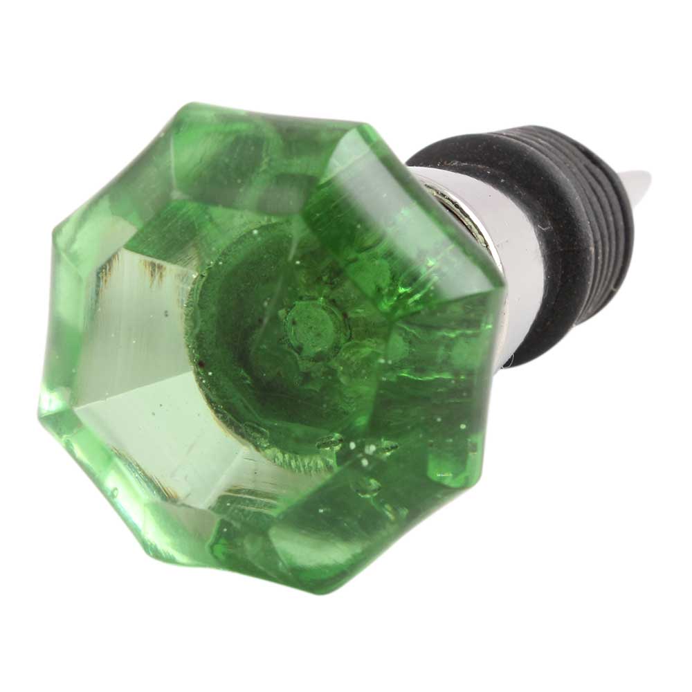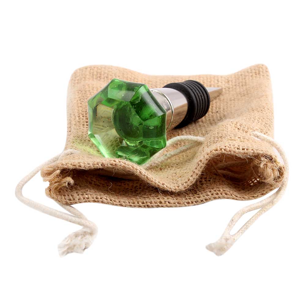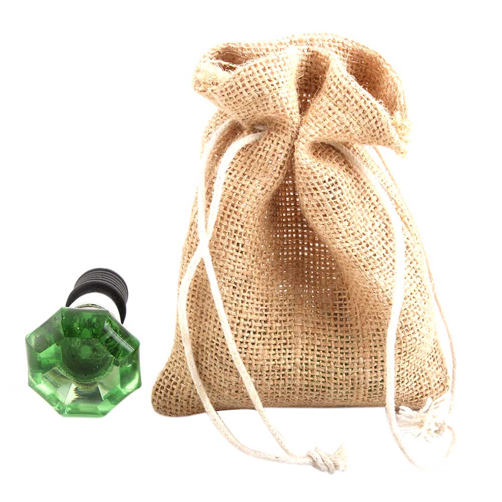 Green Octagon Shape Glass Wine Stopper.zinc alloy wine bottle stopper with attractive Jute Bag Packaging.