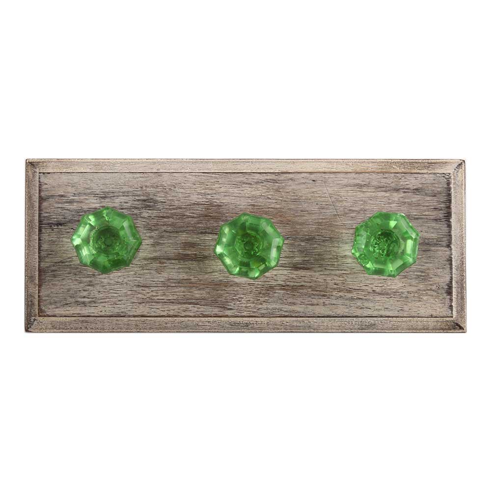Green Octagon Shape Glass Wooden Hook. A Perfect Complement to the Soft Tone of the Wood are these White Traditional Hat & Coat Hook Made of Genuine Glass and Metal. It can be use to Hang Jewellery, Leashes, Towels, Scarves, Light Weight Sweaters, Caps Etc.