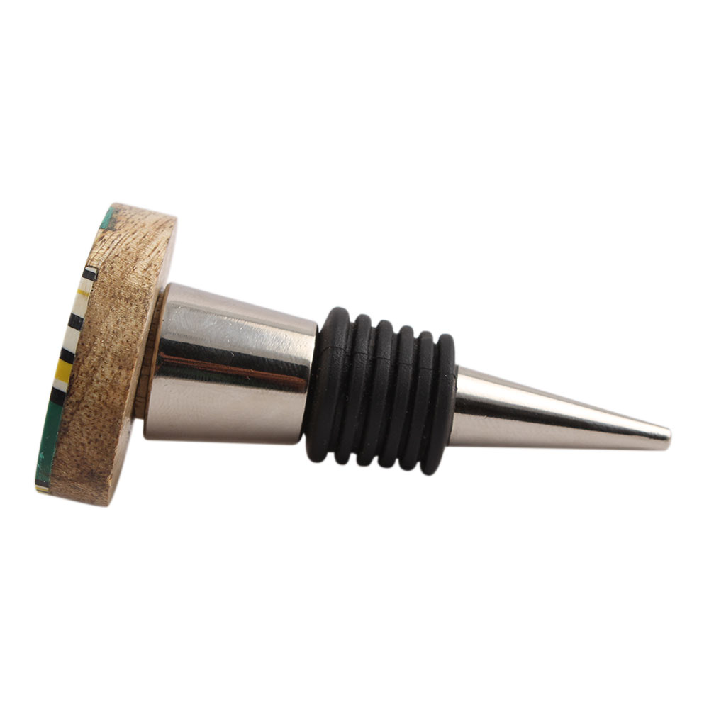 Green Oval Wooden Wine Stopper.zinc alloy wine bottle stopper with attractive Jute Bag Packaging.