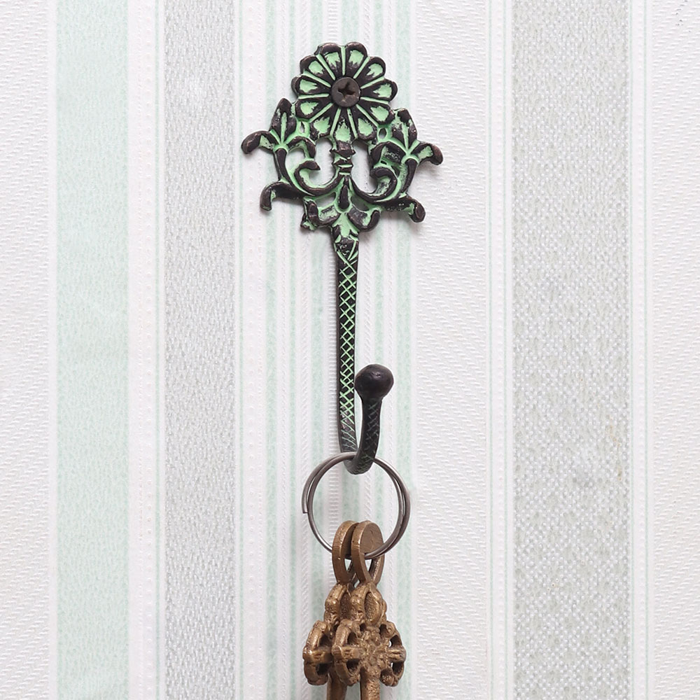 Crafted from premium-quality brass, this wall hook is designed to last. The rich green patina finish gives it an antique, vintage look, adding character and warmth to your home. Whether used in your entryway, bathroom, or bedroom, this hook is not only reliable for everyday use but also serves as a stylish accent piece.