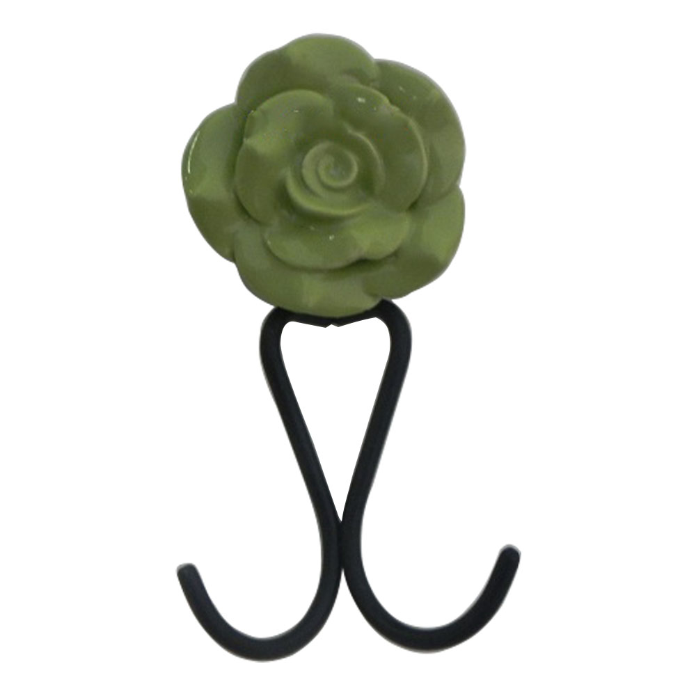 Green Rose Hook. When Put on Wall or Cabinet It is An Art in Itself. This Black Powder Coated Iron Hook is Strong Enough to Hold Your Clothes, Keys, Tea Cups, Coffee Mugs, Hand Towels Etc.
